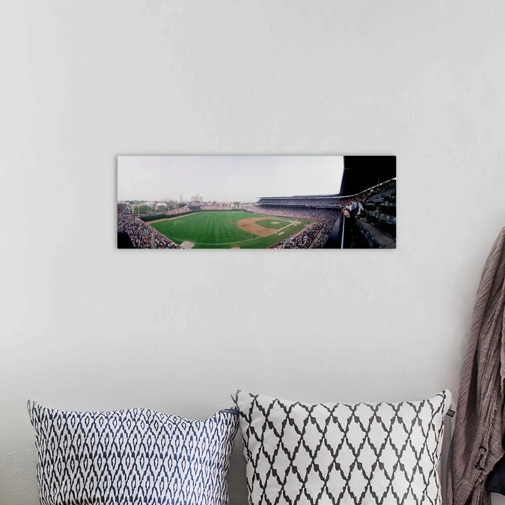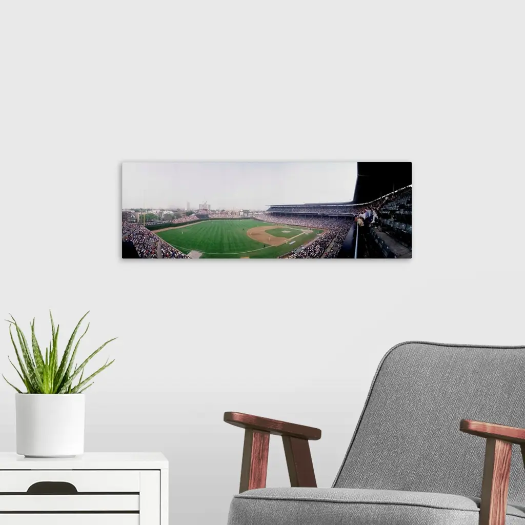 Spectators watching a baseball mach in a stadium Wrigley Field Chicago Cook County Illinois wall art for home and office decor. Discover canvas art prints, photos, mural, big canvas art and framed wall art in GreatBigCanvas.com's varied collections.