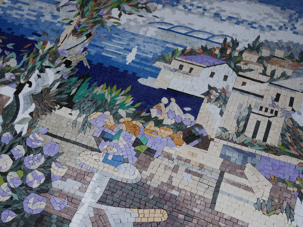 Transform your living space into a breathtaking Italian seaside escape with our Spellbinding Tuscan Mosaic Mural Sea View. This exquisite piece of art isn't just a mural; it's an experience that transports you to the enchanting shores of Tuscany every time you enter the room. Imagine standing under a floral arc, intricately designed to enhance the beauty of the scene, where classic white houses peek through a vibrant coastal landscape that flows into the deep blue sea. Crafted with meticulous attention to detail, this mural is made from premium natural mosaic marble stones, ensuring not only stunning visual appeal but also exceptional durability. Each piece is carefully hand-selected and assembled by skilled artisans, guaranteeing that your mural is unique and of the highest quality. The rich texture and color variations of the marble stones create a sense of depth and movement, making it feel as though you're gazing out onto a real Mediterranean view.Perfect for both indoor and outdoor use, the Spellbinding Tuscan Mosaic Mural Sea View is versatile enough to enhance any space. Whether you choose to install it in your living room, dining area, hallway, or in a garden or patio, it's designed to withstand the elements while maintaining its stunning appearance. Its timeless charm complements a variety of decor styles, from rustic to modern, and serves as a captivating conversation starter.Elevate your home or office with this magnificent mural that encapsulates the beauty of Tuscany and the soothing essence of the sea. Whether you’re an art lover, a travel enthusiast, or simply someone who cherishes beautiful surroundings, this mosaic mural promises to inspire and enchant all who behold it. Bring a piece of the Tuscan coastline into your life with the Spellbinding Tuscan Mosaic Mural Sea View—where artistry meets nature in perfect harmony. Rediscover the allure of the Mediterranean with every glance at your wall, creating a sanctuary of beauty and serenity in your own home.