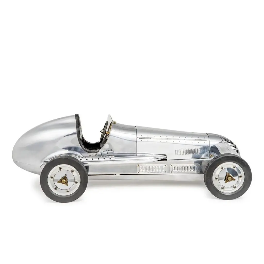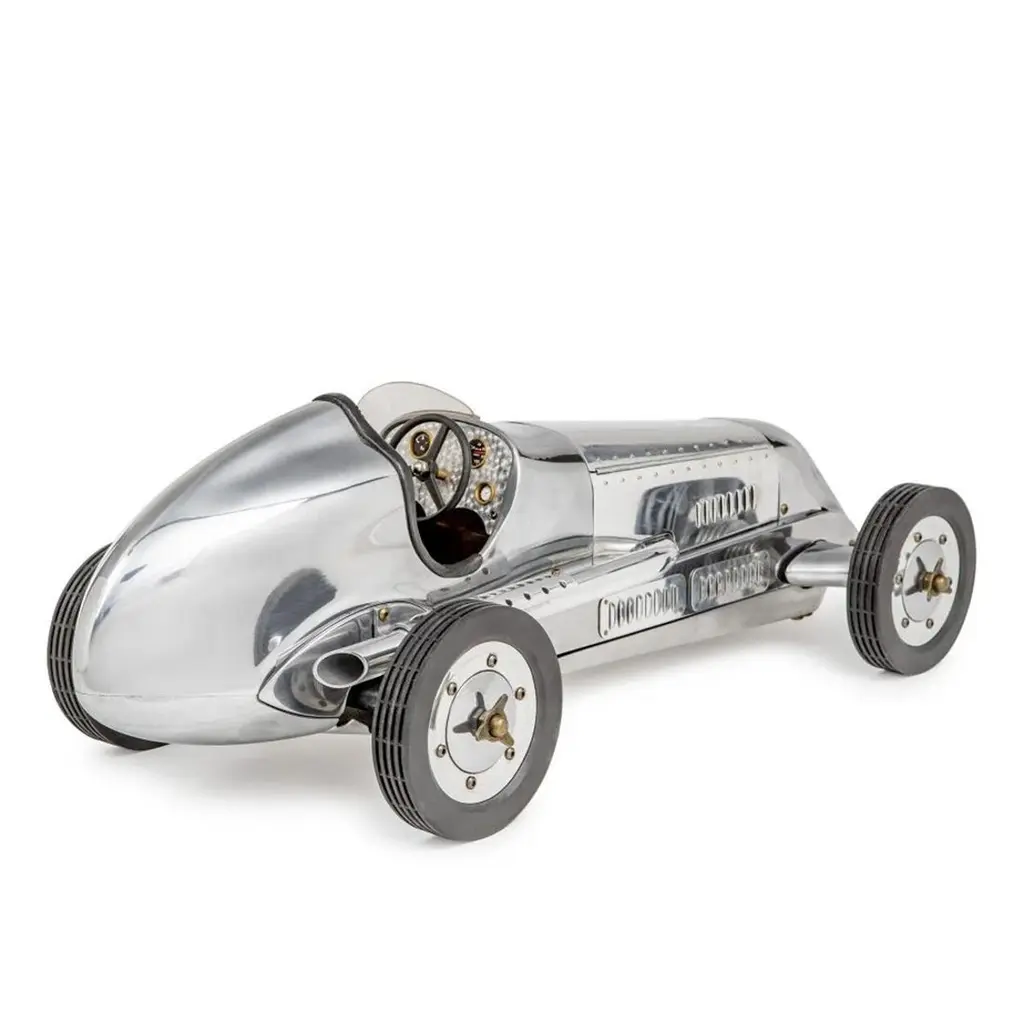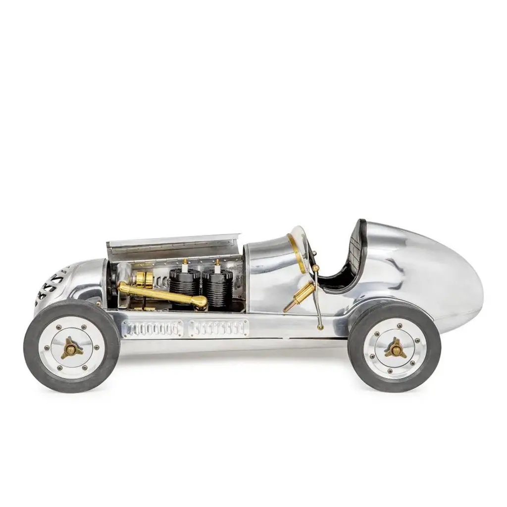 Model Spindizzies polished racing with aluminium structure, with plastic and aluminium details. Model in polished aluminium finish.