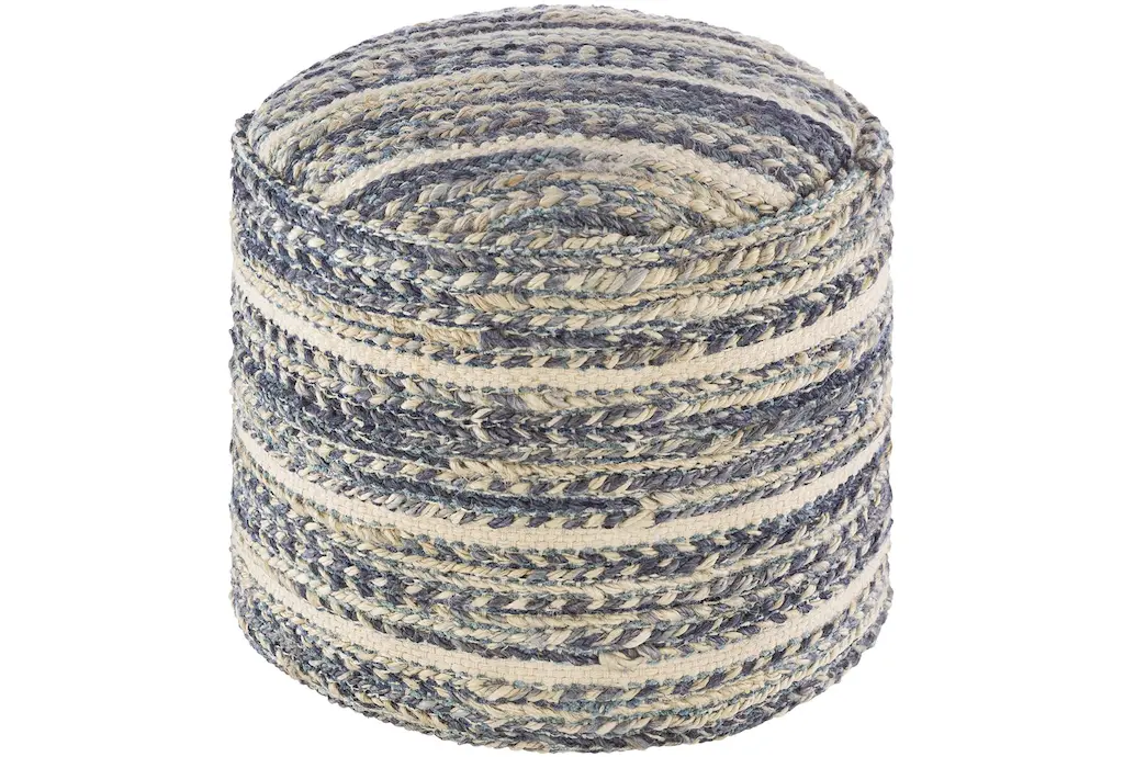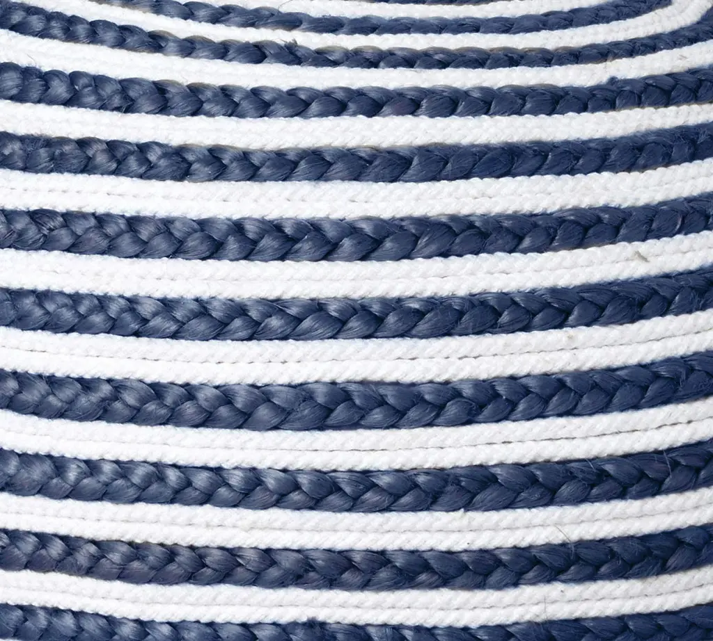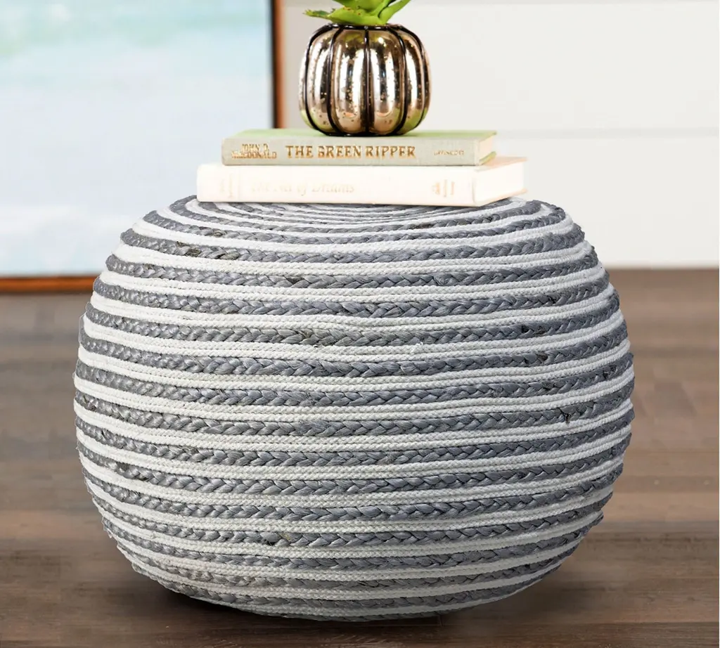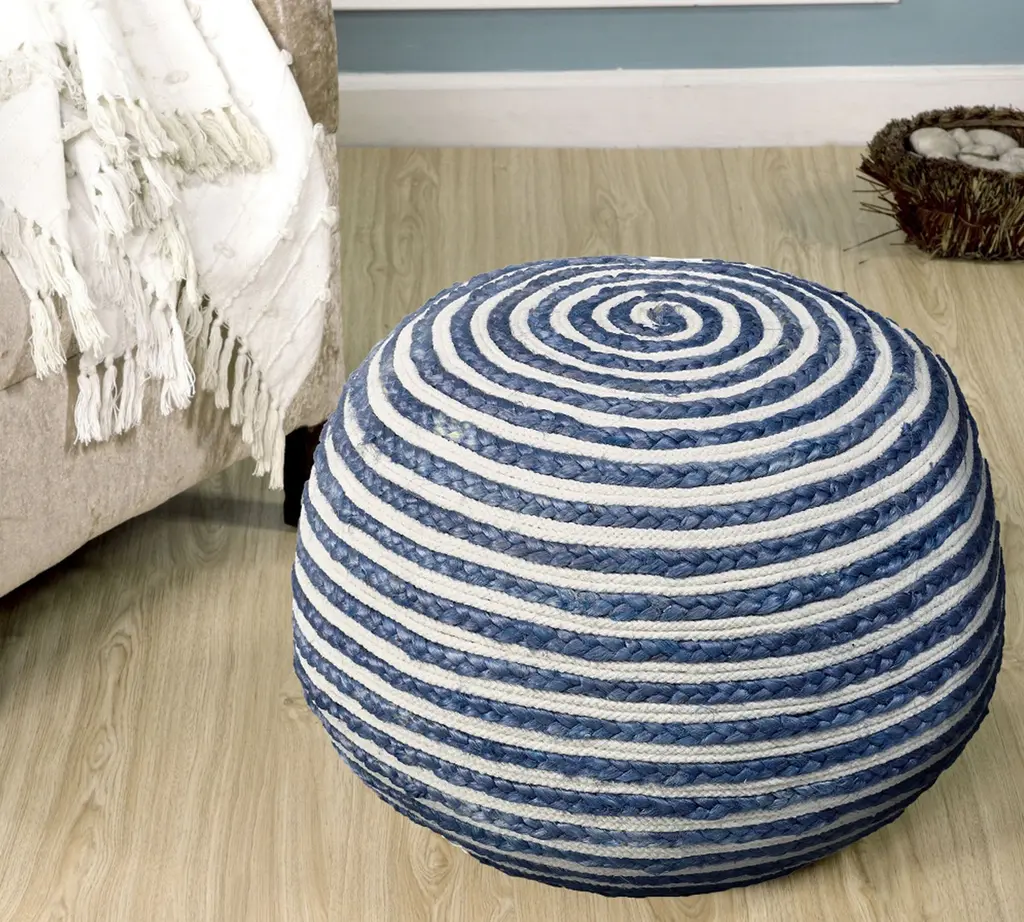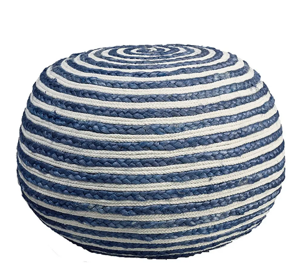 An eye-catching spiral pattern distinguishes our pouf. Expertly hand-braided of a jute-cotton blend with an earthy two-tone palette, the textural design offers a relaxed, rustic accent that beautifully complements country and seaside settings. The portable pouf is perfect for use as an extra seat, side table, or footrest.