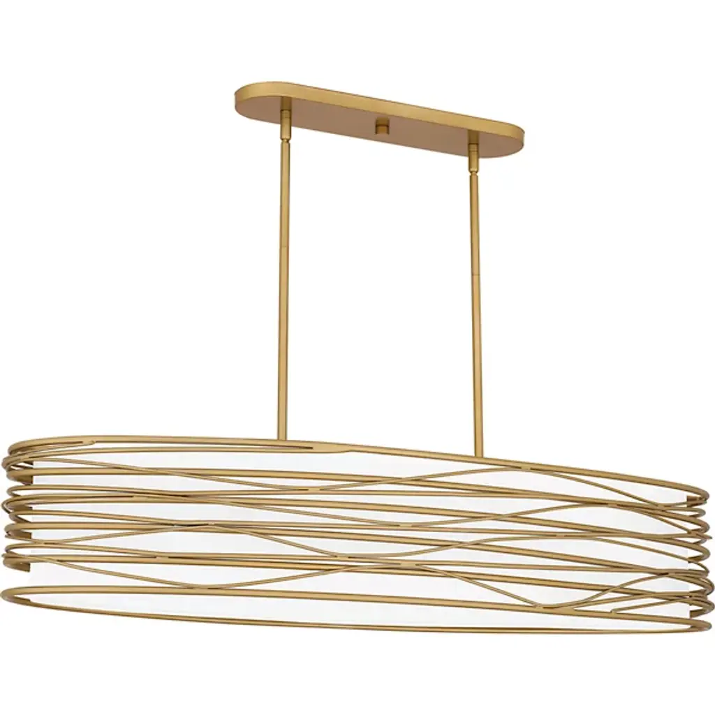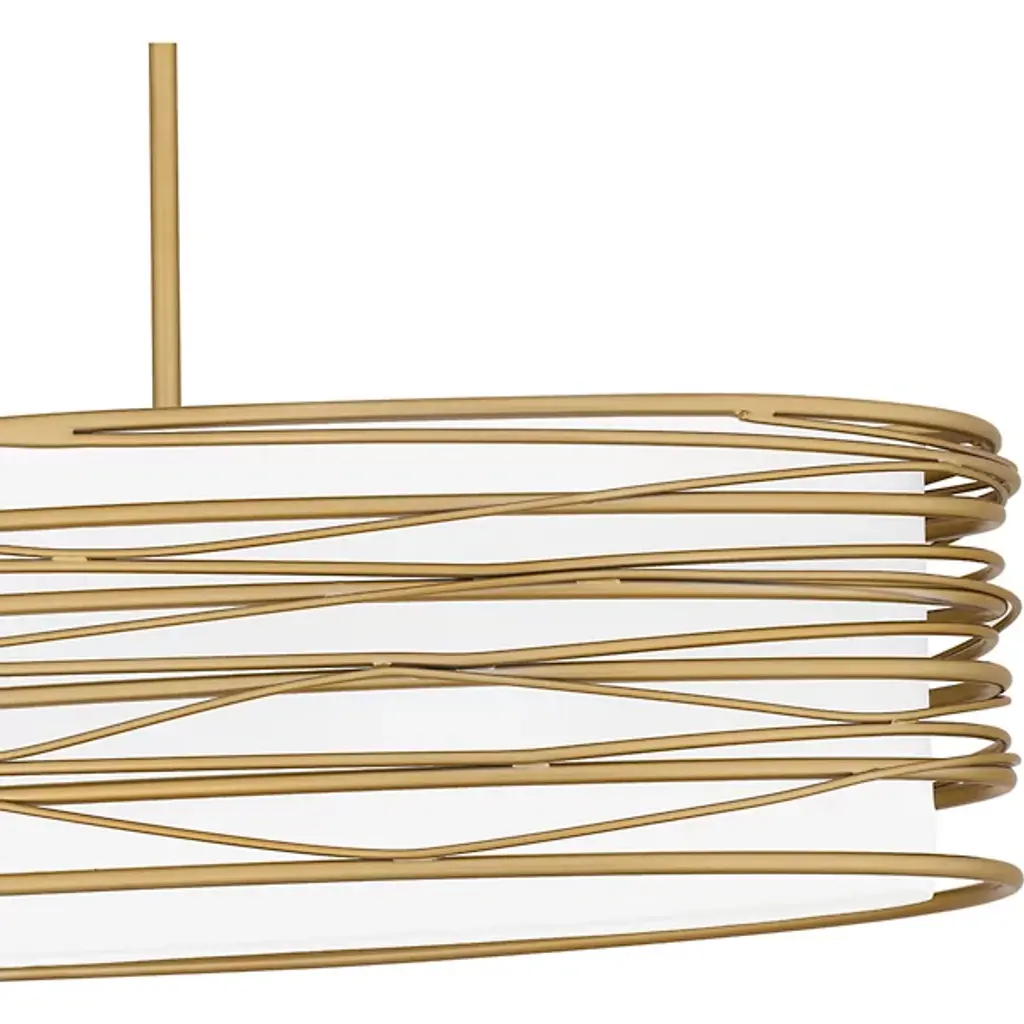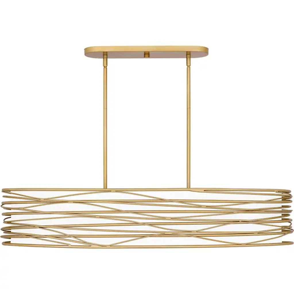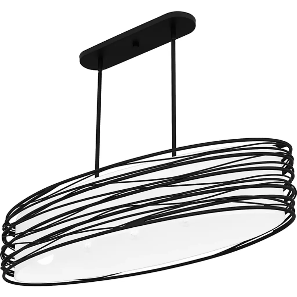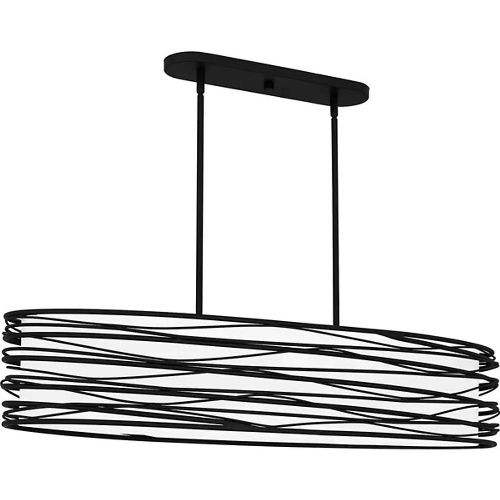 The Spiral Linear Susension from Quoizel offers a whimsical, multi-layered design that improves the creative facets of any space. It features a coiling outer steel shade that tunefully matches the finish on the body, creating a cohesive look. The inner fabric shade provides a soft contrast to the metal frame that complements a variety of transitional interiors. The adjustable height and compatibility with sloped ceilings allow you to create the perfect lighting arrangement for your home with this linear chandelier.