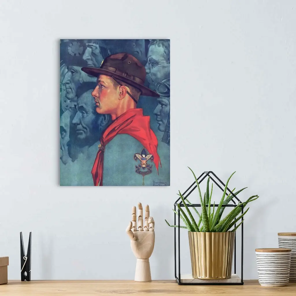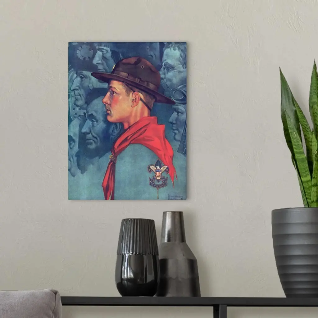 Norman Rockwell's long artistic relationship with the Boy Scouts of America began after he successfully illustrated the Boy Scout Hikebook in the fall of 1912 and lasted until 1976 with Rockwell producing their annual calendar illustrations. Many of the images depict the Scouts learning, teaching, or doing outdoor activities. Approved by the Norman Rockwell Family Agency