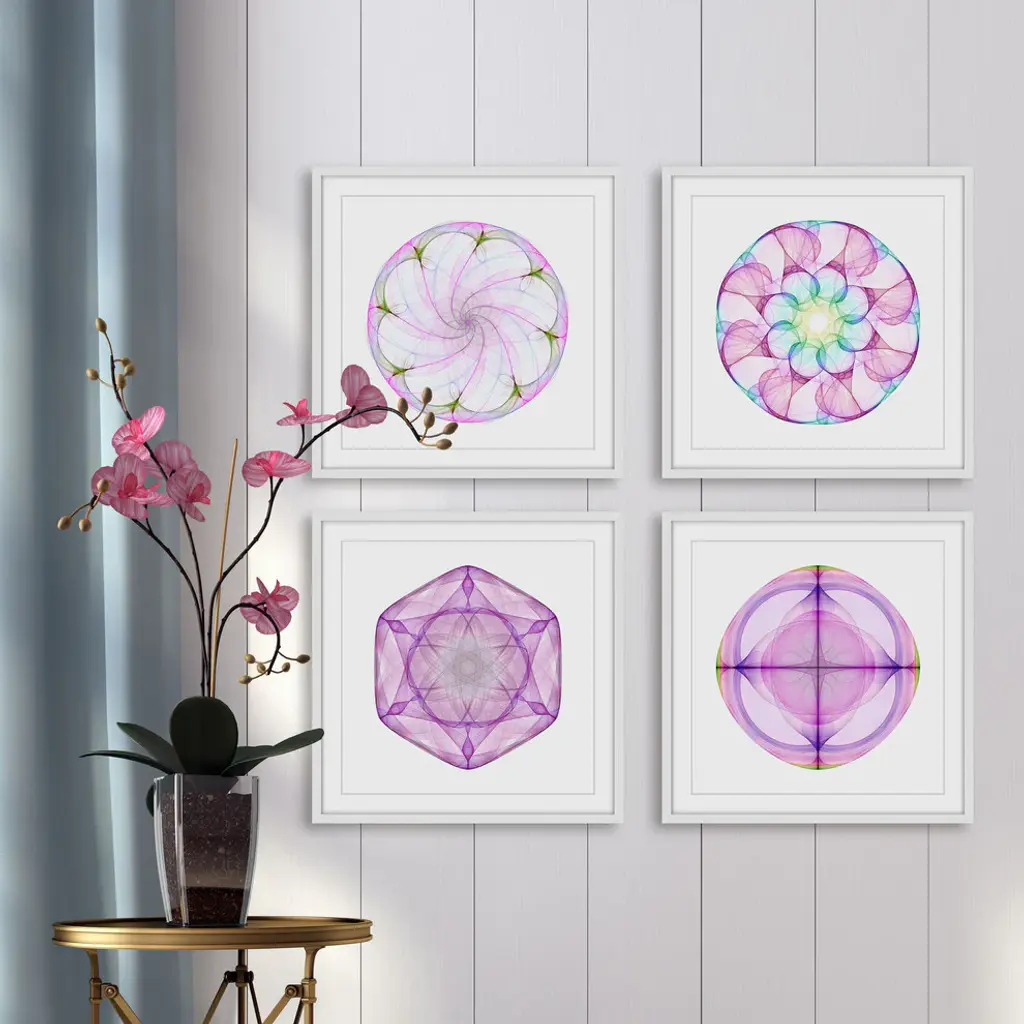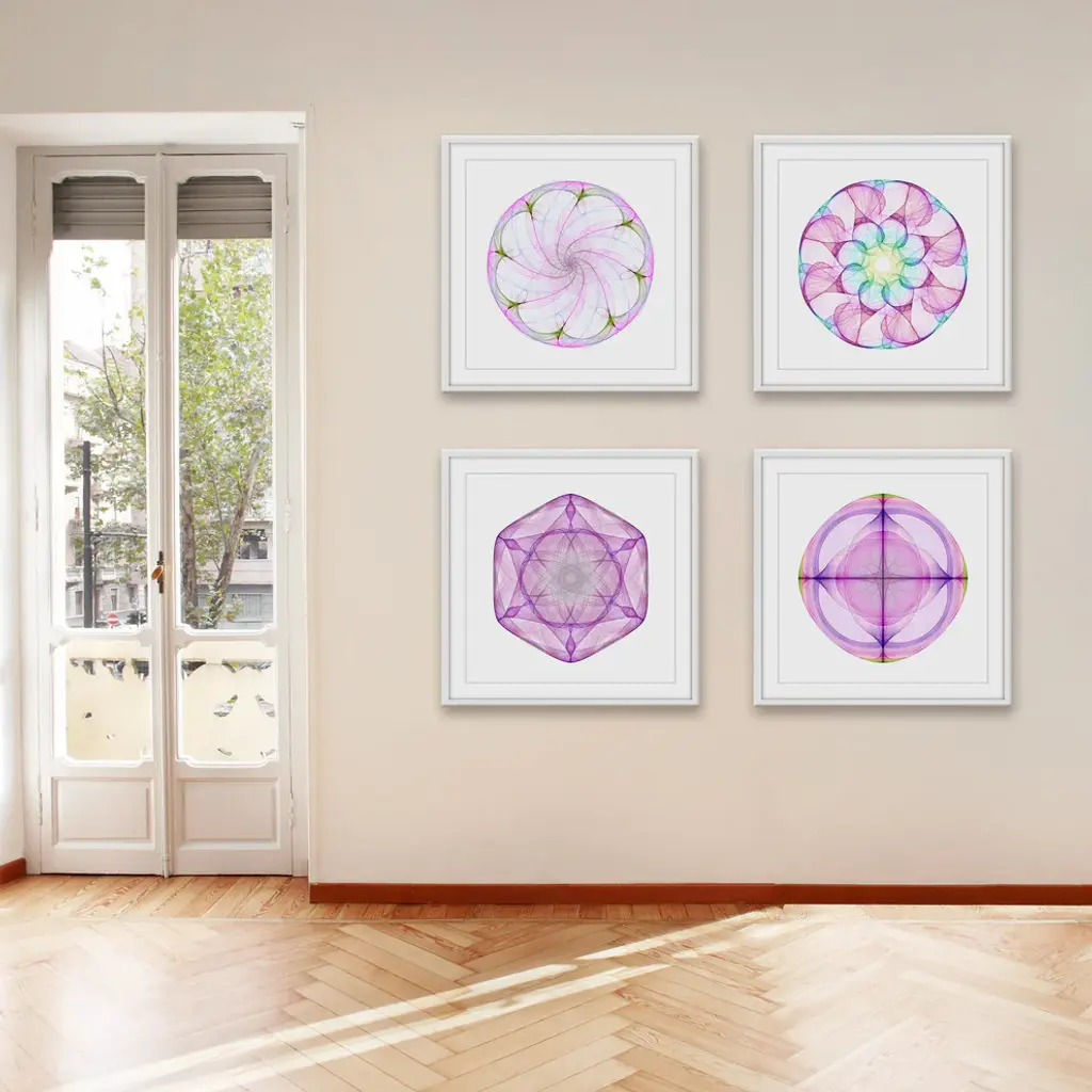 - (4) panels of 12x12- Top quality Giclee print on high resolution Archive Paper- Professionally framed and mounted on acid free archive matte- High quality durable non-warping frame- Arrives ready to hang- Includes a certificate of authenticity- Made in the USA