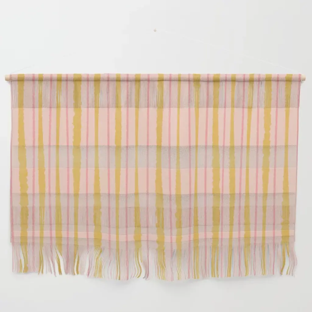 Splendid Stripes - Retro Modern Stripe Pattern In Gold, Pink, White, And Mushroom Wall Hanging