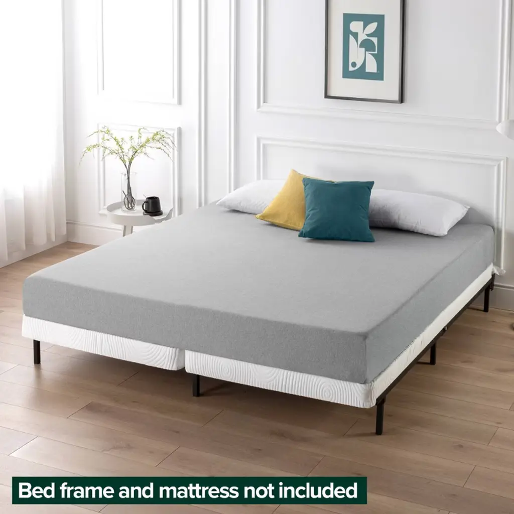 Split California King 4'' No Assembly Metal Box Spring - Zinus: Bifold, Heavy Gauge Steel, 5-year Warranty