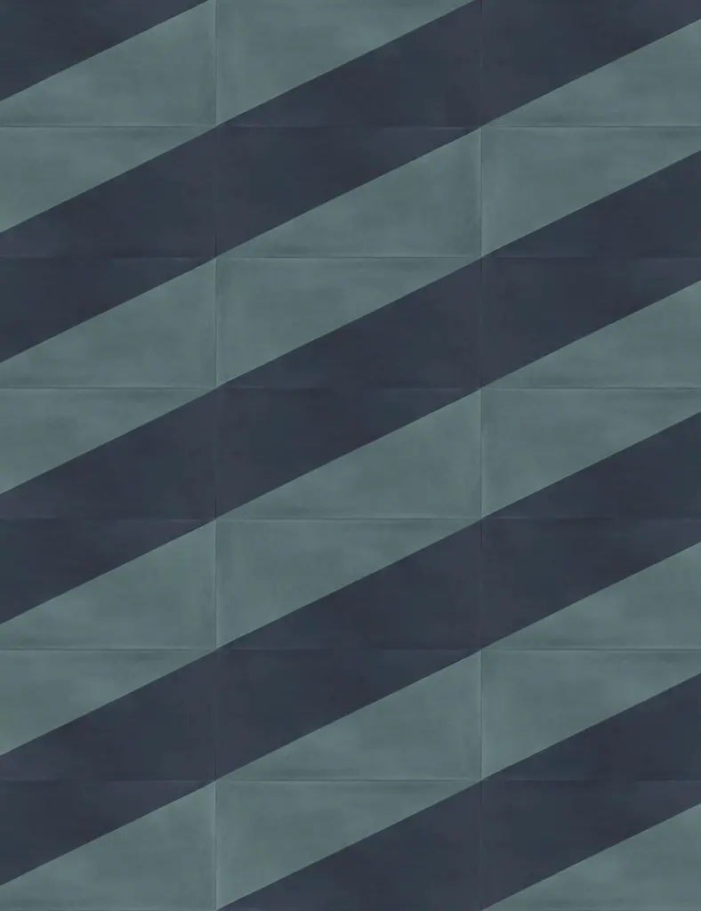 There are two ways to split a rectangle diagonally, from corner to corner, into two colors — upper left / lower right, or lower left / upper right. By combining and arranging these two basic units you can create numerous eye-catching designs with our fabulous oversized Split Rectangles — zig-zags, diagonal bands, diamonds, triangles, and more!Cement tilesType: Encaustic cement tileProduction process: Hydraulic pressing processMaterials: White cement, stone powder, additives, grey cement, sand/clay, and glazeQualities and maintenance: Porous — apply sealer as recommended by manufacturer on productTiles per box: 8Note: Please expect subtle variations in the color and thickness of our handmade tiles.Lead times may vary and delays are possible due to circumstances beyond our control. We are not responsible for delayed installation, lost work time, or altered construction timelines in the event of a delay. All tile orders are final — no returns or exchanges will be accepted. Shorter lead times depend on stock availability.Samples are only for reference to color and scale, and although they are carefully packed, samples may be inadvertently damaged during shipment or may contain fragments of chipped tile or clear breaks in the sample. We add 20% overage to all tile orders to account for this.
