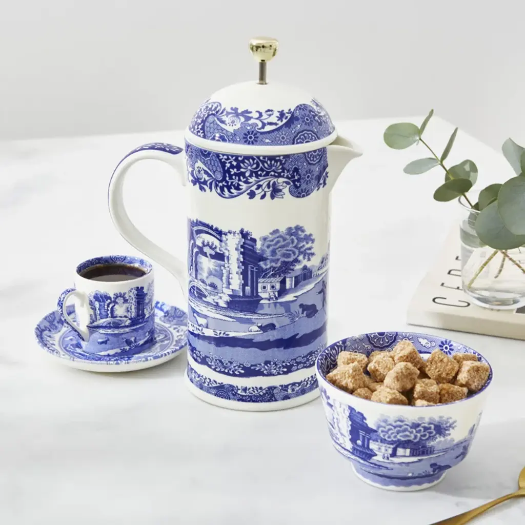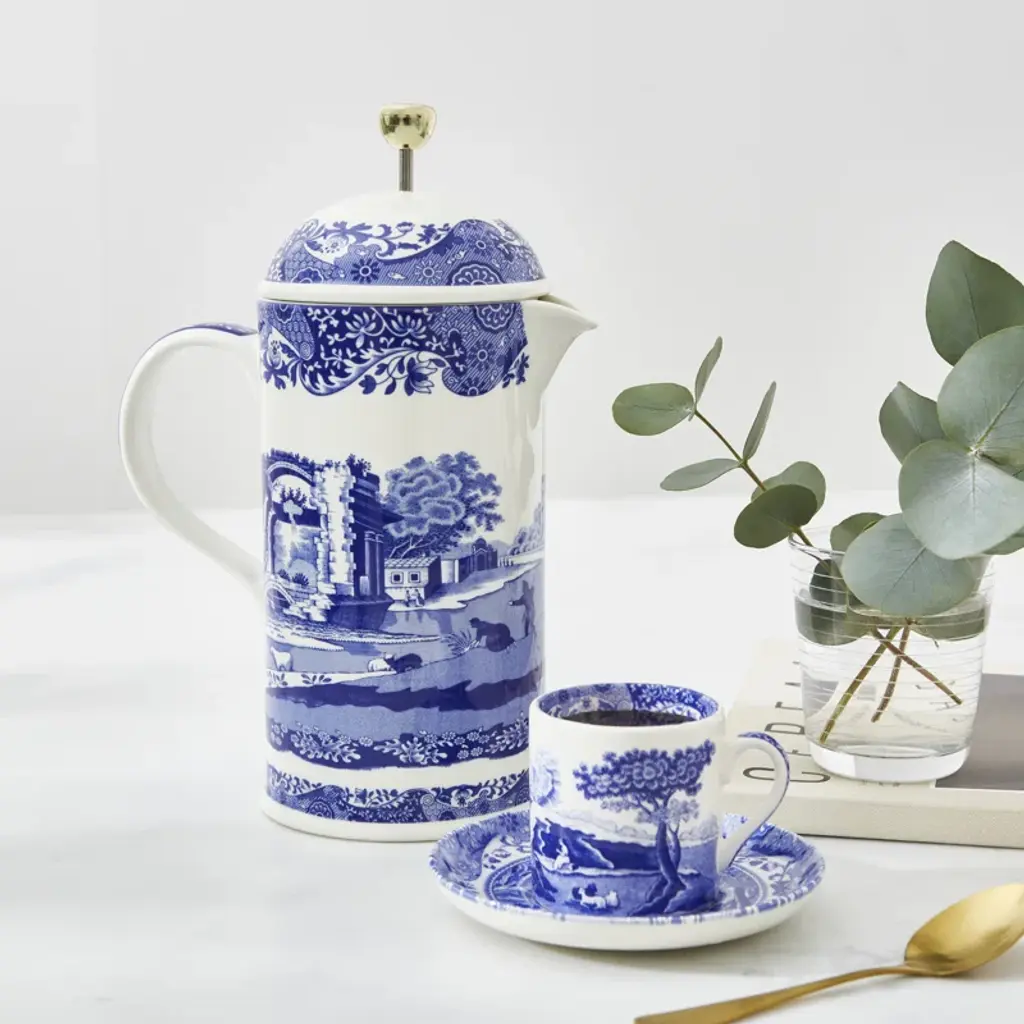 The perfect addition to a morning breakfast or afternoon pick-me-up, this blue Italian Cafetiere brings a touch of class to proceedings. The porcelain Cafetiere will keep your coffee warm whilst the perfectly fitting plunger keeps the coffee away from the pour. This results in an enjoyable cup of coffee that has been poured to perfection in style. Made from the finest porcelain with stainless steel plunger. Designed to give the perfect pour.