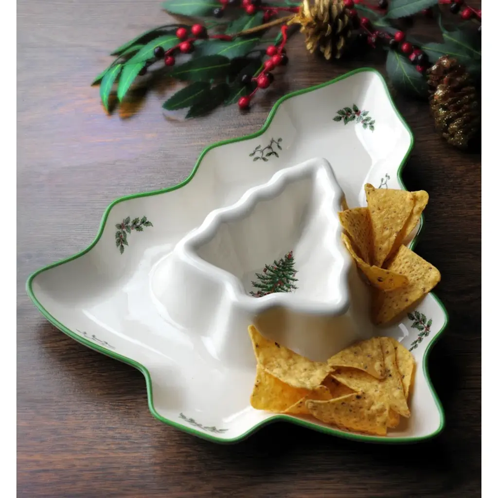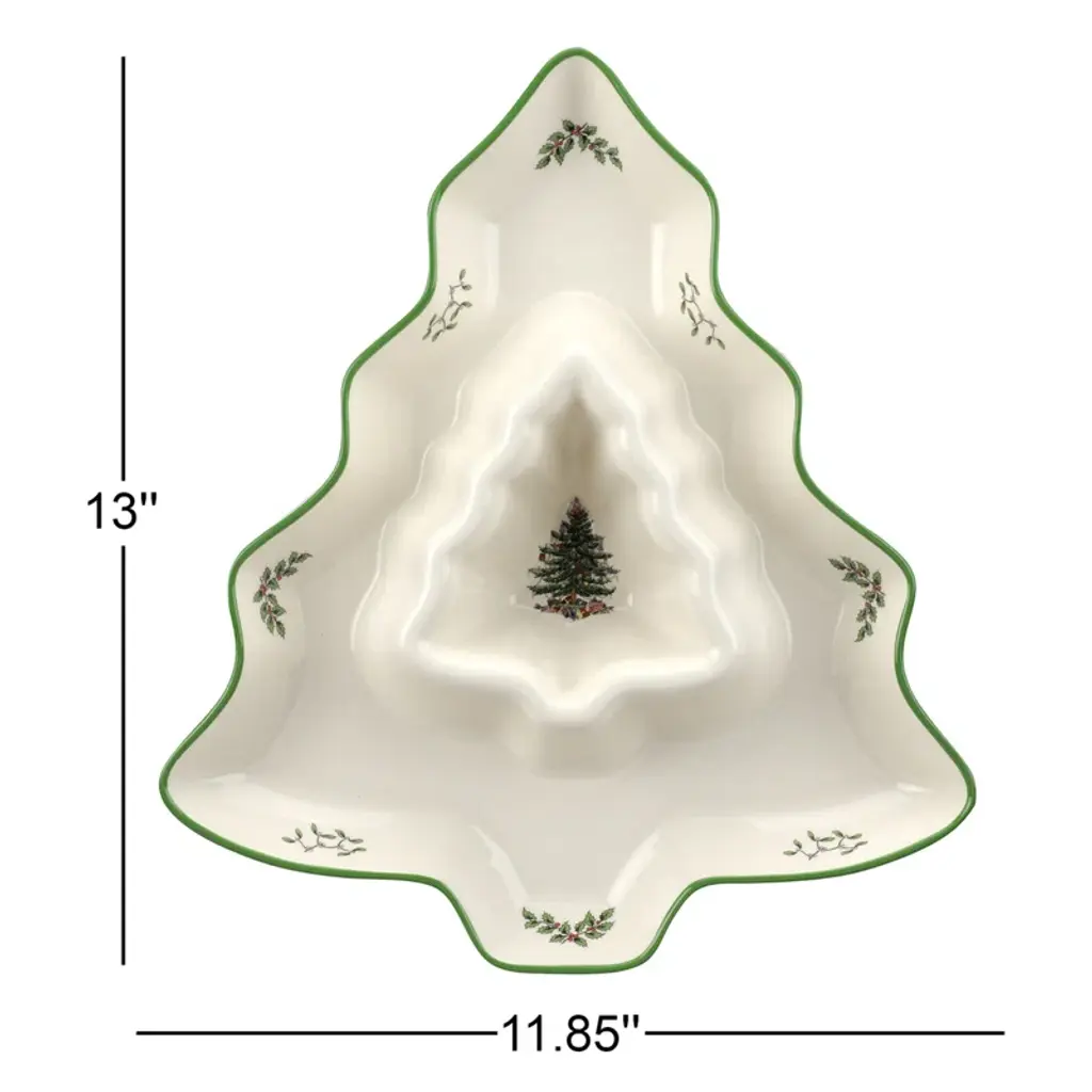 Spode Christmas Tree Tree Chip & Dip 13"