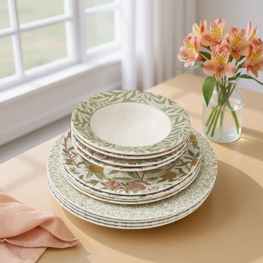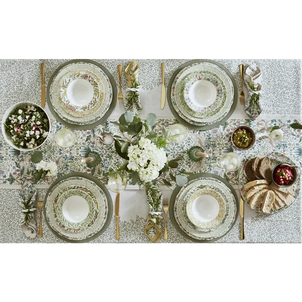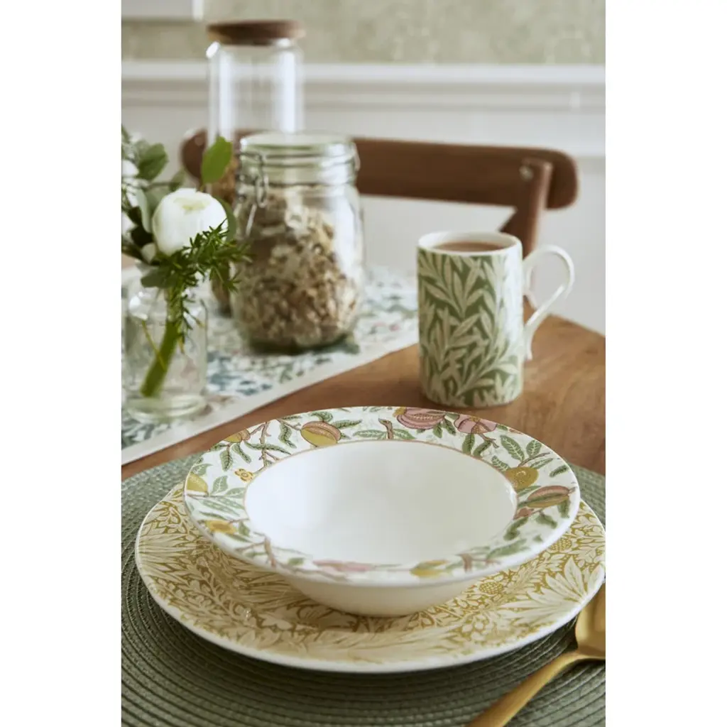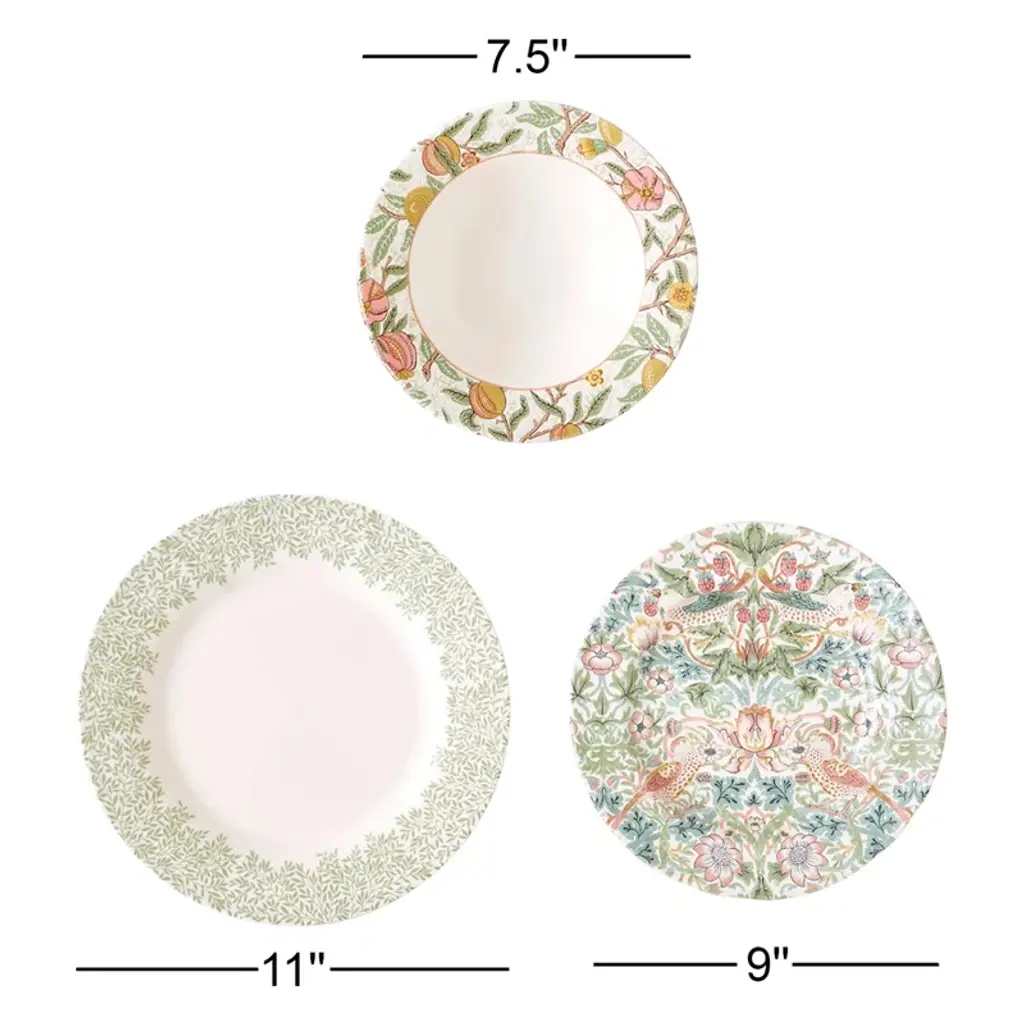 Set an irresistible table with this heritage-inspired dinner set .Featuring four dinner plates adorned with the Standen design and four salad plates and cereal bowls featuring the Fruit, Marigold, Willow and Strawberry Thief designs, this set is a pattern-lovers dream. Offering fresh maximalist styling, layer this set for a statement table or use the pieces separately to bring a touch of glorious style to every occasion. Made in England, this set is dishwasher microwave and oven safe.