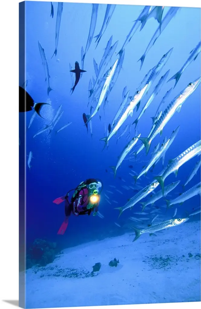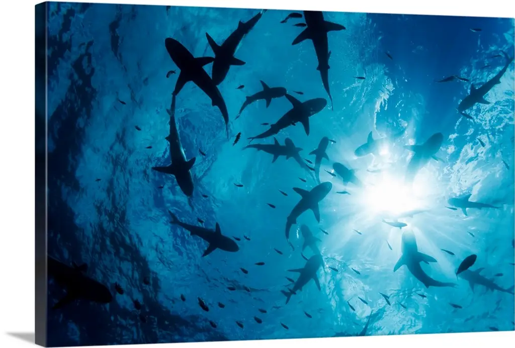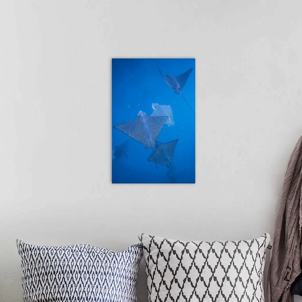 Spotted Eagle Rays Underwater At Leon Dormido Island, Galapagos, Ecuador