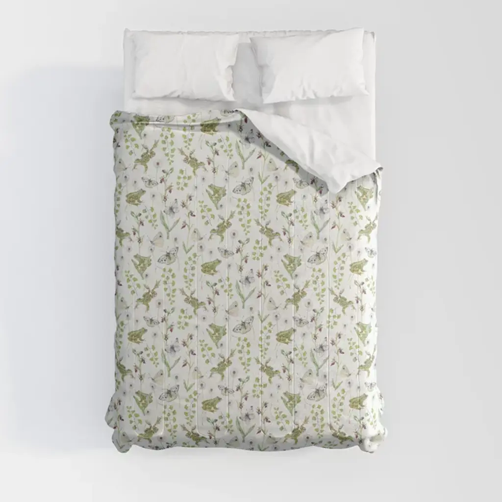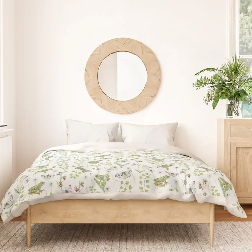 Spring Frogs And Orchids - Light Green Duvet Cover