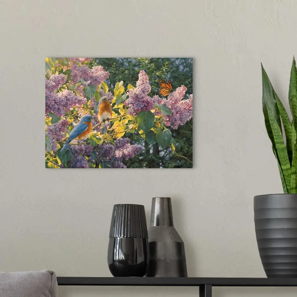 Spring Interlude - Eastern Bluebird wall art for home and office decor. Discover canvas art prints, photos, mural, big canvas art and framed wall art in GreatBigCanvas.com's varied collections.