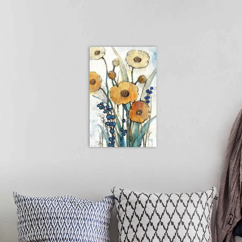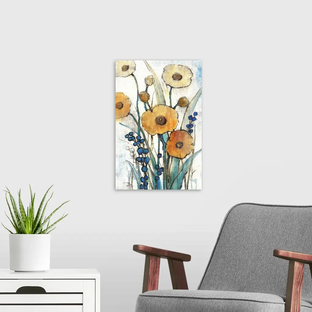 Contemporary art print of poppy flowers in bloom.