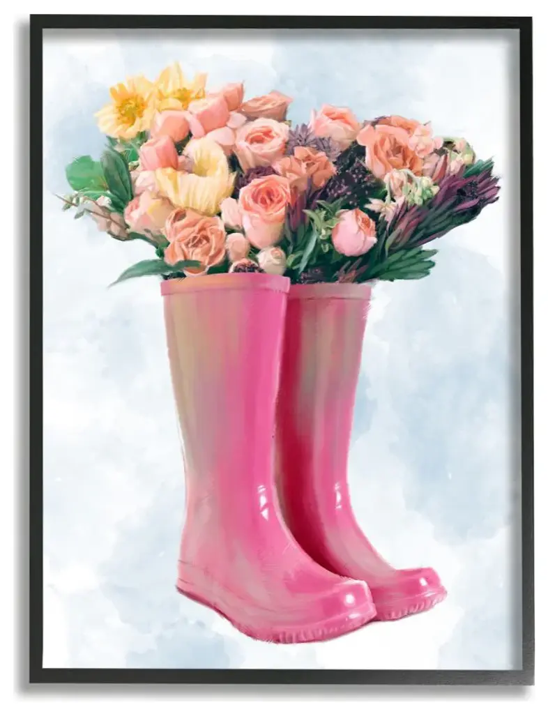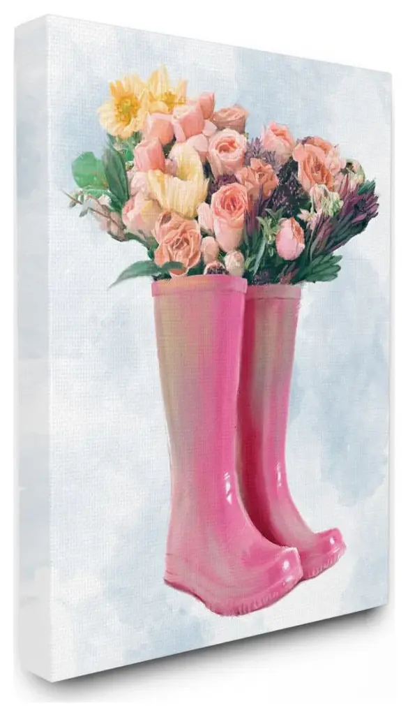Spring Roses In Pink Rainboots Floral Arrangement,1pc, Each 16 X 20