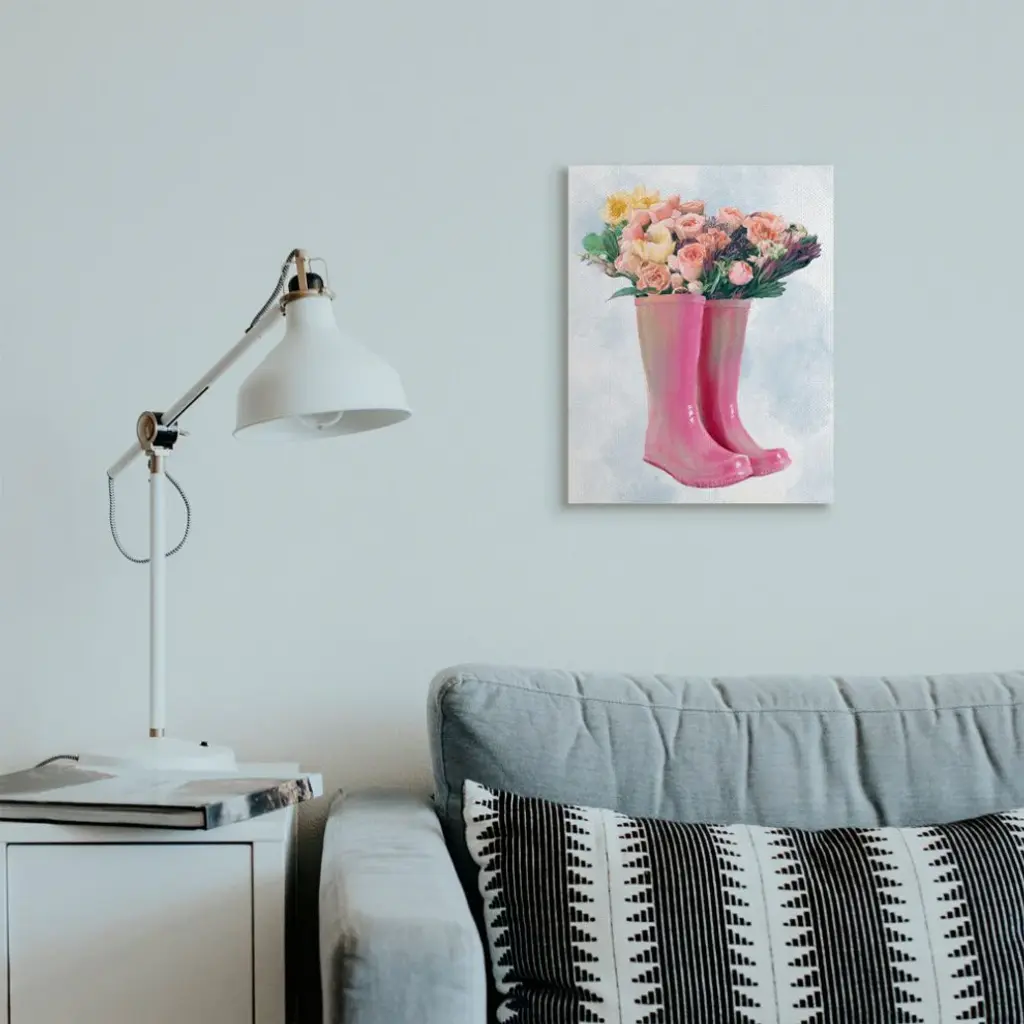 Spring Roses In Pink Rainboots Floral Arrangement,1pc, Each 16 X 20
