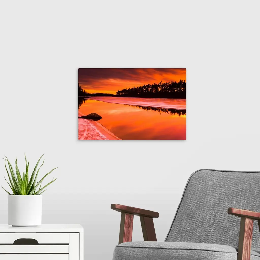 Spring Thaw Sunset, Rocky Lake, Nova Scotia, Canada wall art for home and office decor. Discover canvas art prints, photos, mural, big canvas art and framed wall art in GreatBigCanvas.com's varied collections.