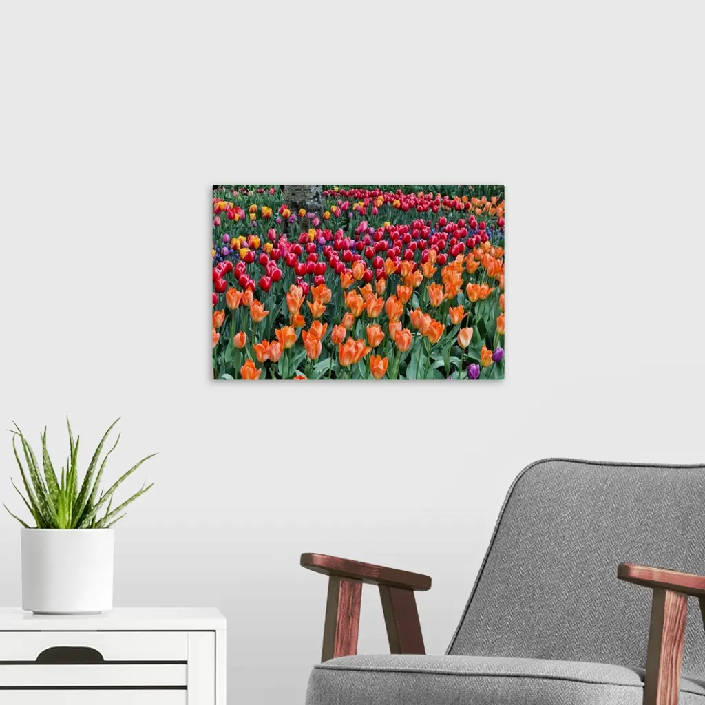 Spring Tulip Garden In Full Bloom, Skagit Valley, Washington State