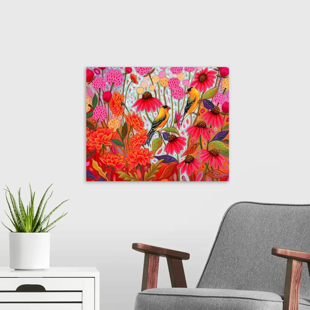 Springtime Goldfinches V2 wall art for home and office decor. Discover canvas art prints, photos, mural, big canvas art and framed wall art in GreatBigCanvas.com's varied collections.