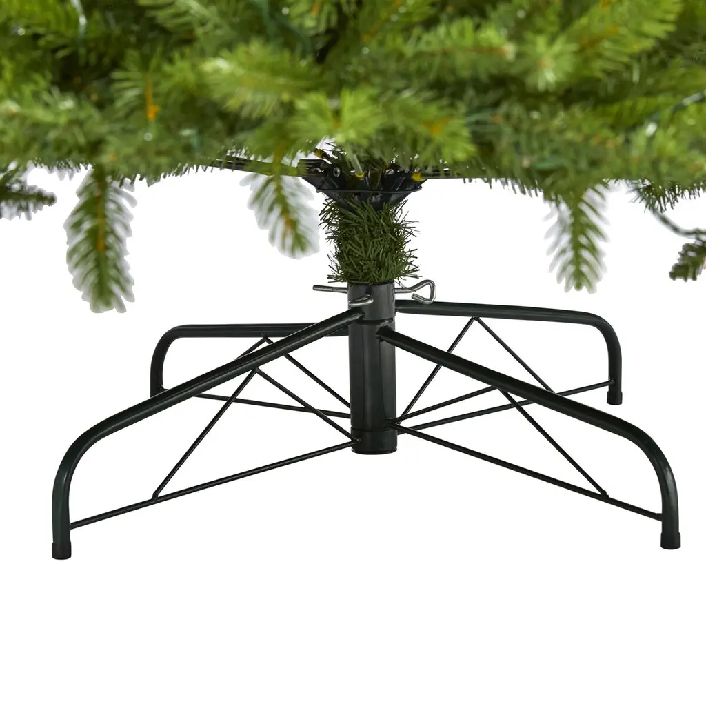 An impressive nine feet high, this faux spruce tree makes a major festive statement. Its 4,443 bendable branch tips are prestrung with 1,000 clear LED lights to complement any ornaments you hang from them.