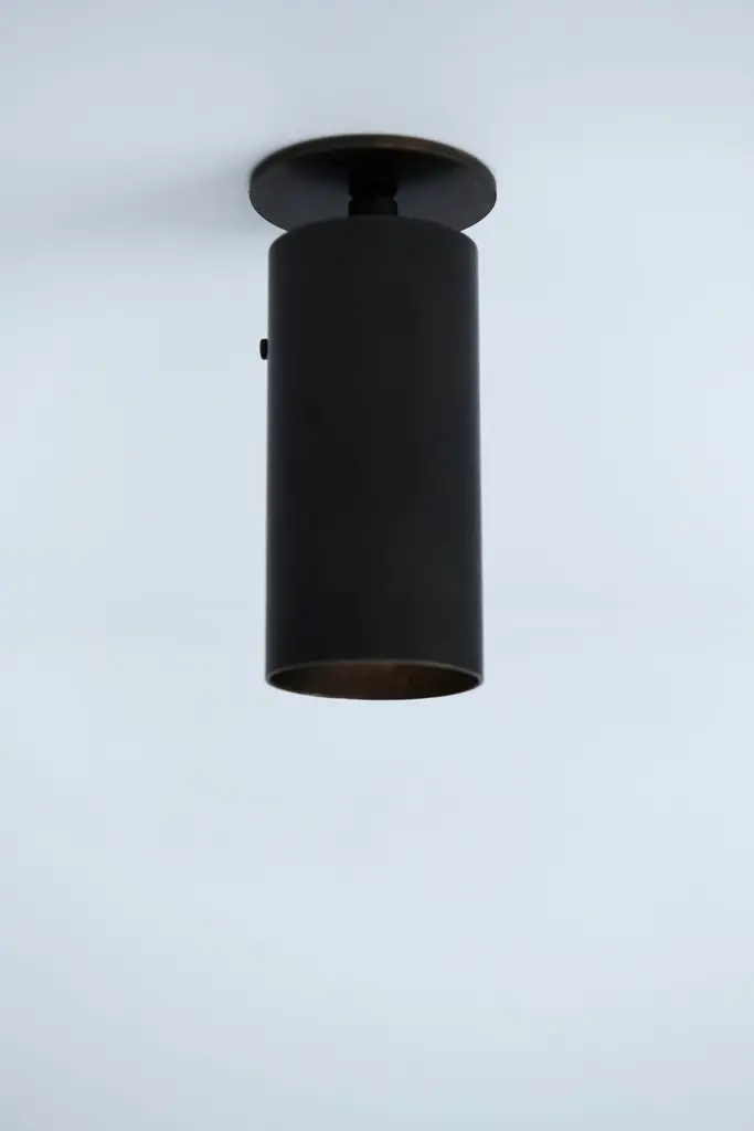 Handmade in solid brass exclusively for Dunlin Australia.A heavyweight, solid brass pivoting spotlight. A cast brass ball pivot allows the light to rotate around its stem. 14.5 cm long x 6.3 cm dia(5.7" Long x 2.48" Dia)Finish: Blackened Brass-Blackened Brass, a dark weathered brass, appears black but, has a smoked depth to the colour. TECHNICAL DETAILS14.5 cm long x 6.3 cm diaGU10 lamp holder. 240V max5W 2700K LED by Philips Master Series. Dimmable. 90CRI. 400Lumen.Solid brass constructionExclusive to DunlinDunlin, Founded in 2010 by Australian architect Nicholas Barber, Dunlin has grown to be a devoted source for Australia’s leading Architects, Interior Designers and private clients for lights of exceptional beauty and quality.Exclusively distributing leading international lighting firms for over a decade, Dunlin remains the designers choice for lights and objects of beauty. Dunlin is located in Bondi Beach, Sydney, Australia.If In-stock will ship out in 3 business days. Out of Stock 8-12 weeks for production.