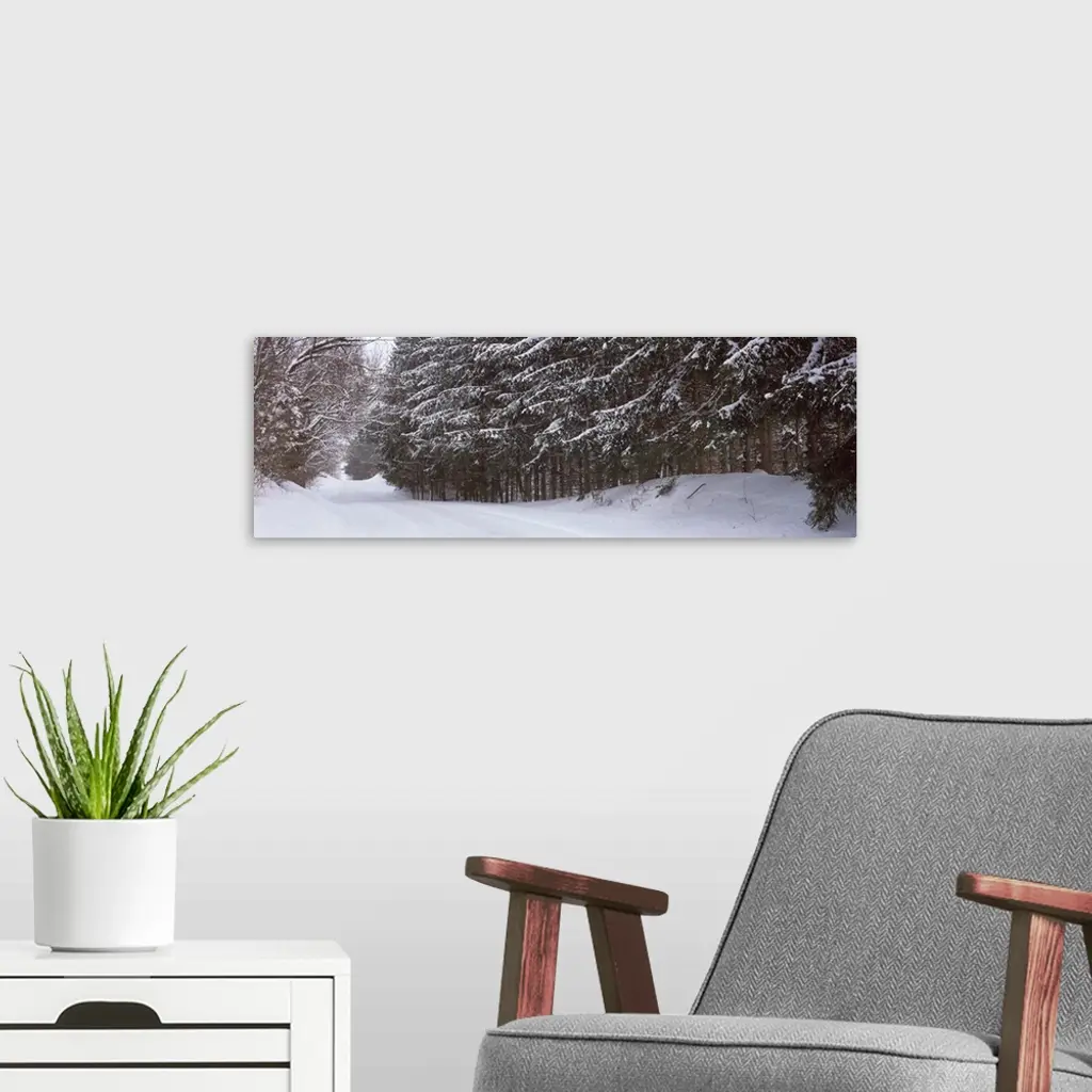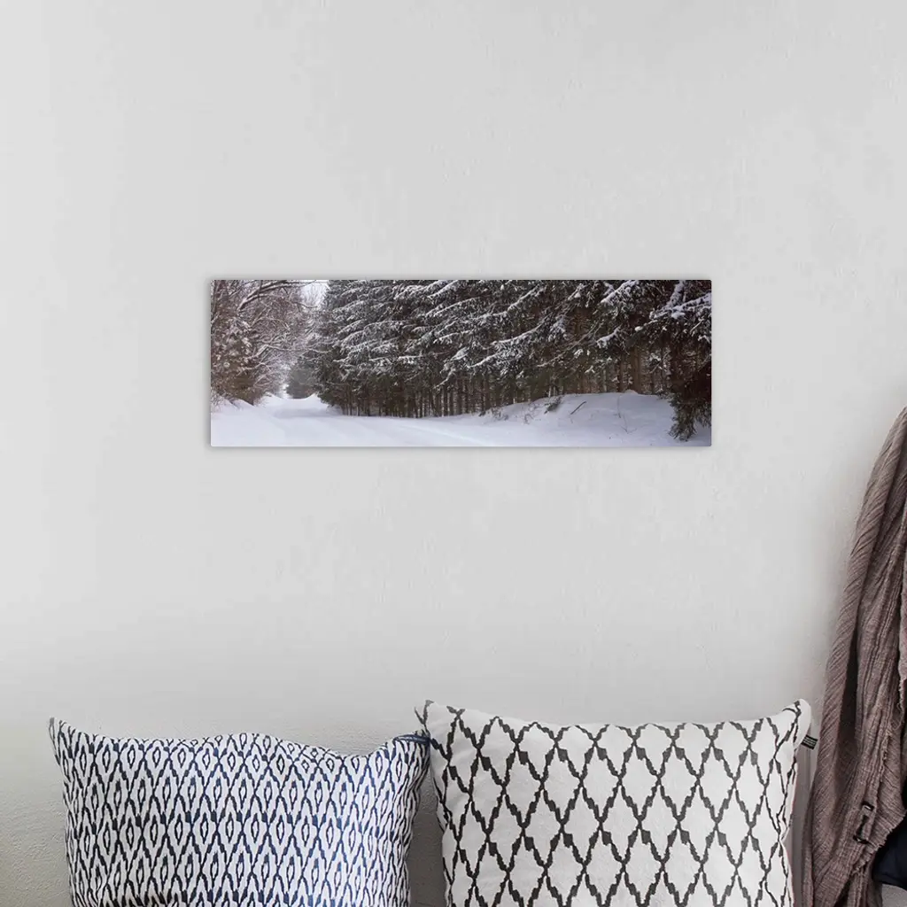 Spruce trees along a snow covered road, Grand Rapids, Kent County, Michigan wall art for home and office decor. Discover canvas art prints, photos, mural, big canvas art and framed wall art in GreatBigCanvas.com's varied collections.
