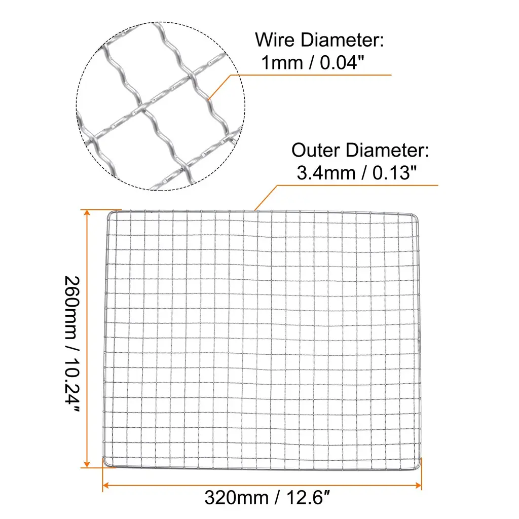 Square Bbq Grill Net 12.6"x10.2" Stainless Steel Barbecue Mesh For Baking - Silver