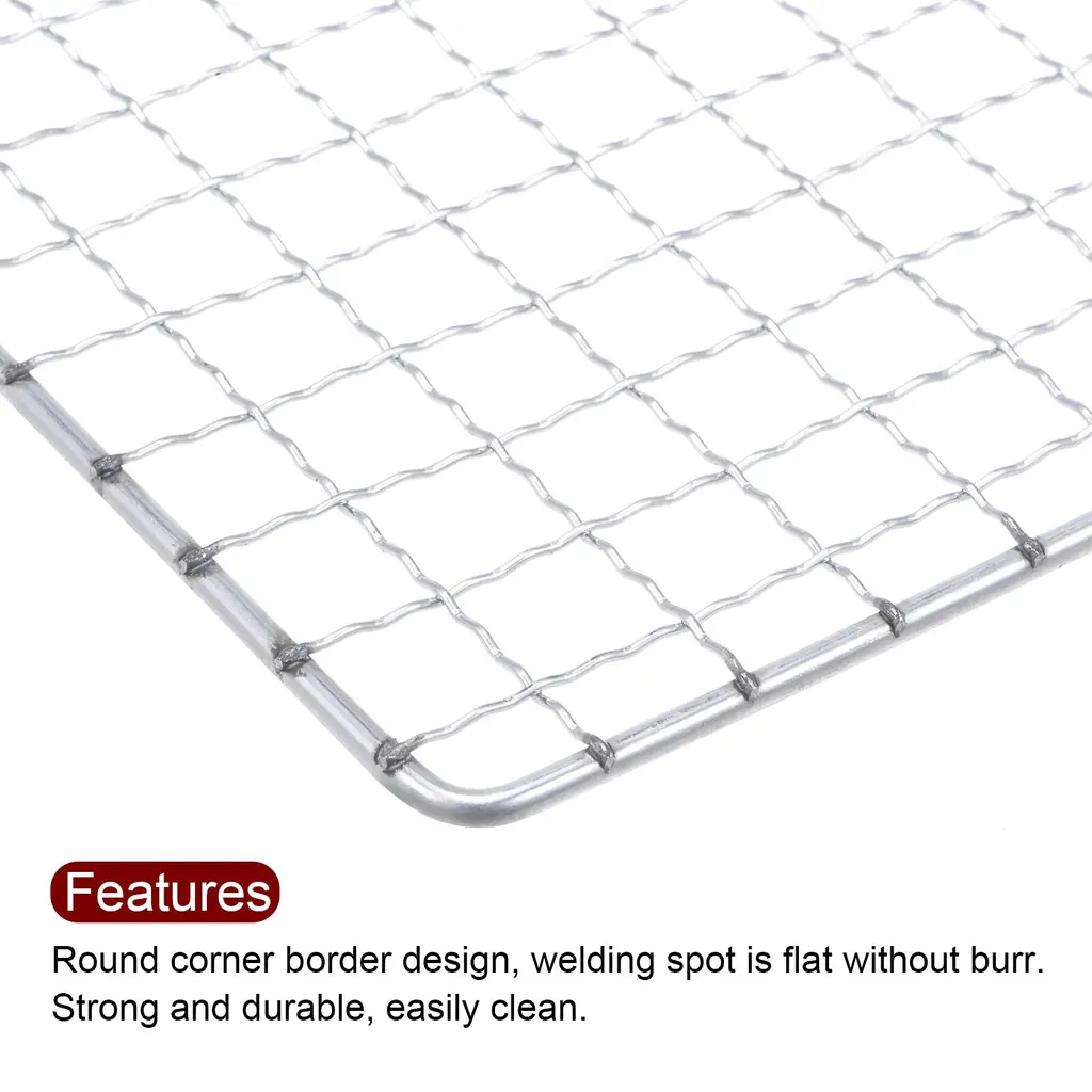 Square Bbq Grill Net 19.7"x7.5" Electroplated Stainless Steel Barbecue Mesh - Silver