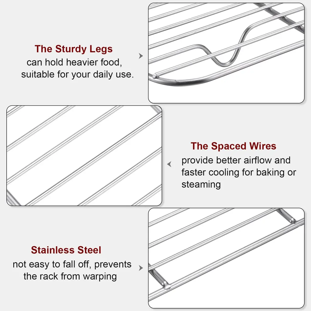 1. Barbecue mesh mat is made of stainless steel for strength and durability, it is effective against rust and corrosion to ensure a long lasting life.2. This square BBQ grill net is designed with 4 supporting feet which can keep the food stable on the grill, meanwhile the mesh wires provided the perfect air circulate. 3. This baking wire rack can be cleaned very easily by water, and also you can put it into the dishwasher to help to cut the time and effort.4. Our cooling racks are suitable for various workplace such as bakery, kitchen, restaurant, and outdoor BBQ, an efficient for large amount of daily needs hold which can be widely used to roasting, cooking, baking and draining food in the oven.5. NOTE: Please confirm the right size and shape before the purchase.