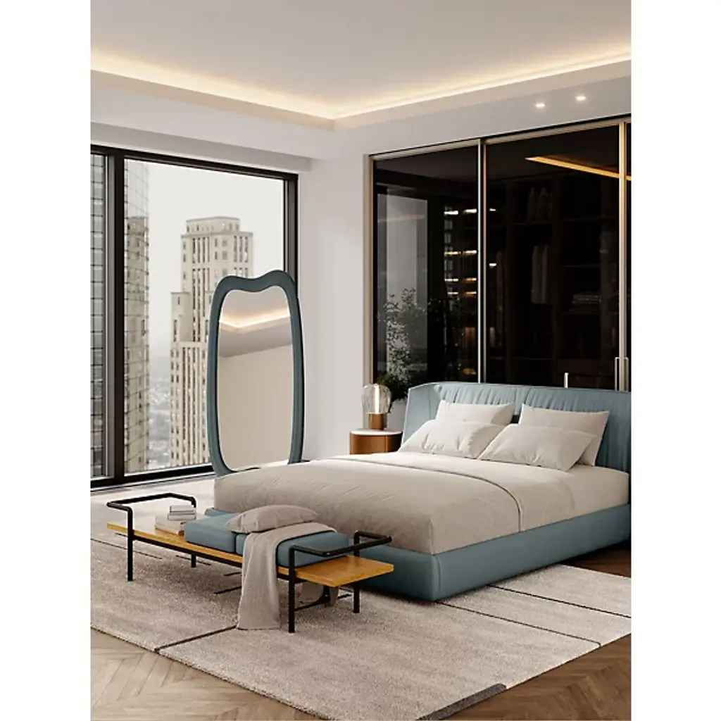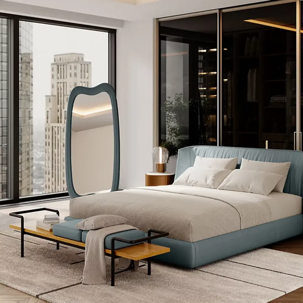 Transform your surroundings with the subtle, swooping lines of the Squash Long Mirror from Poltrona Frau. An Italian-made design created by Faye Toogood, it matches materials of sustainably harvested fiberboard and a luxurious layer of leather to upholster a curving frame and stand. The central mirror glass reflector is offset by the curvature of the frame, coordinating well with other members of the “Squash” family or standing out well on its own with designer flair.