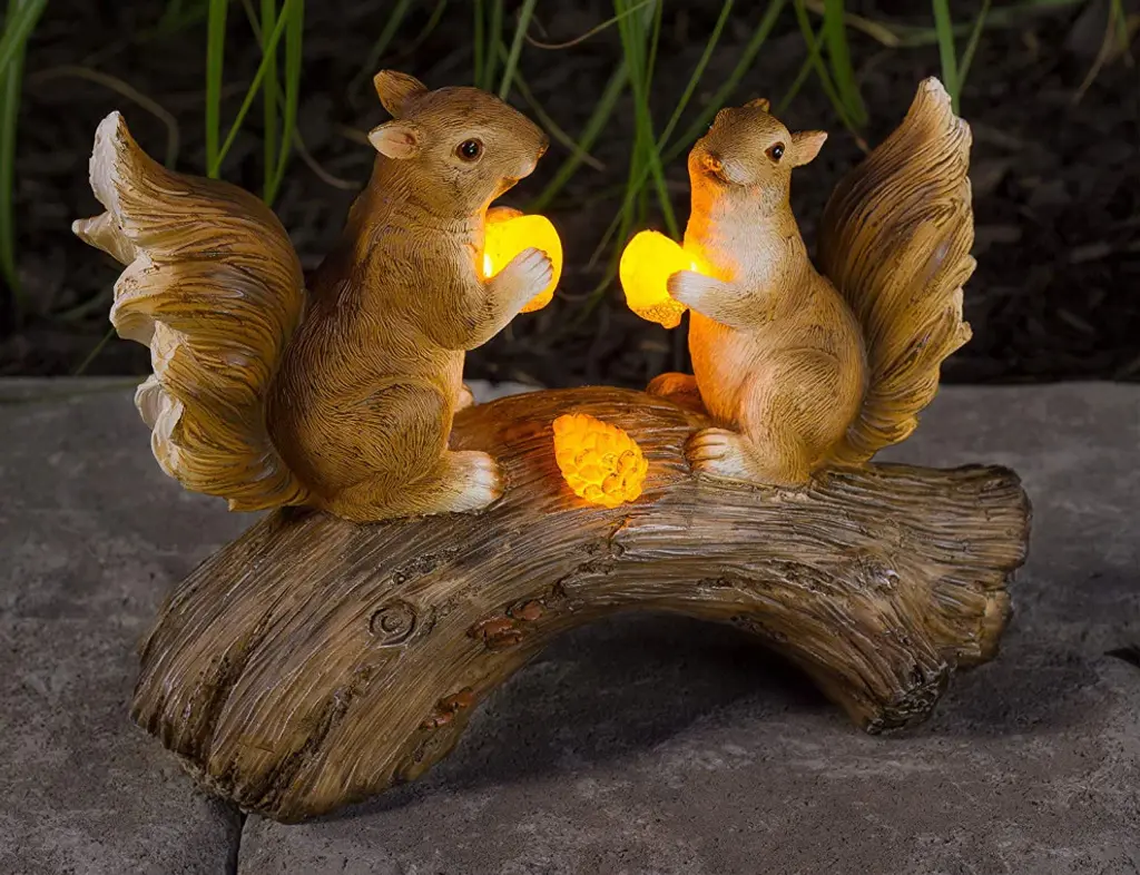 Squirrels On A Log Solar Powered Outdoor Led Light