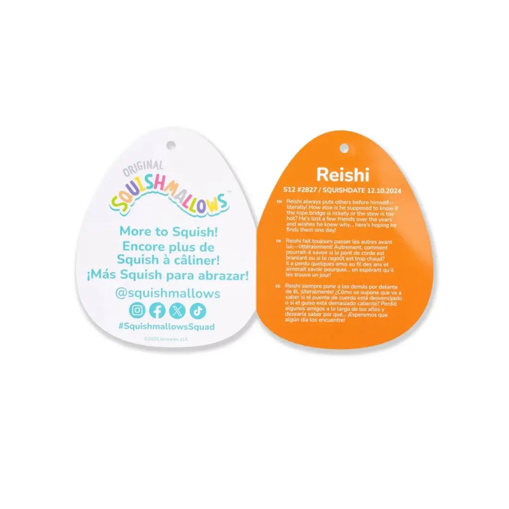 Reishi always puts others before himself—literally! How else is he supposed to know if the rope bridge is rickety or the stew is too hot? He’s lost a few friends over the years and wishes he knew why… here’s hoping he finds them one day!Meet your new bestie, Reishi! Each Squishmallow plush comes with its own unique name and bio and makes the perfect cuddly companion for long flights out or comfy nights in. Reishi is only by Original Squishmallows. Join the Squad today!