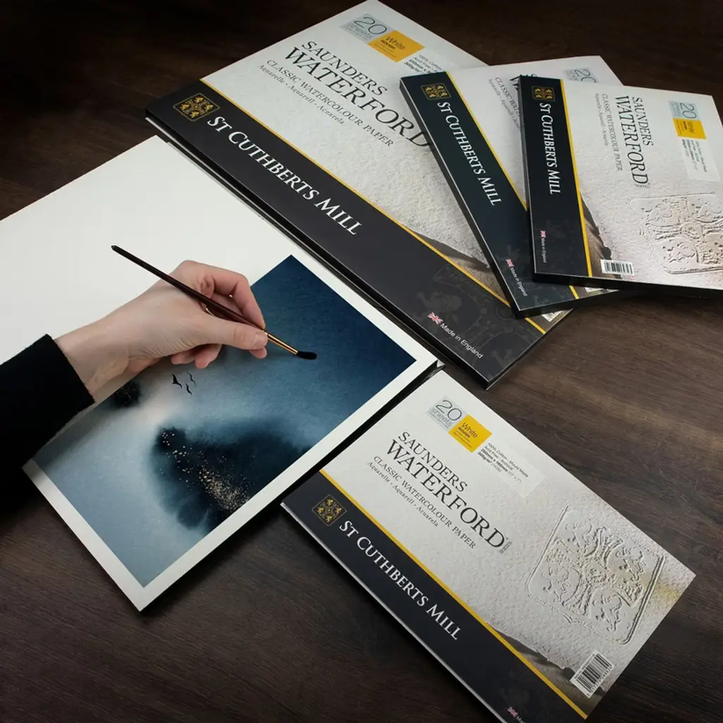 St Cuthberts Saunders Waterford Watercolor Block, Rough, White, 140lb/300gsm, 20 Sheet, 14x10 inch, 1 Count | Discover the luxury of Saunders Waterford® — the ultimate professional watercolor paper crafted with precision at St Cuthberts Mill in Wells, England. Made on a traditional cylinder mould machine with 100% cotton, this paper is the epitome of quality, offering a lush texture that's as distinctive as your artistic vision. The natural woolen felts used in its creation give each sheet a unique, random texture, making every stroke a first-time experience. Designed to handle the roughest techniques — from scrubbing to scraping — Saunders Waterford® is as tough as it is beautiful. Plus, with high archival standards & calcium carbonate buffering, your masterpieces are protected from discoloration & pollution. Endorsed by the prestigious Royal Watercolor Society, founded in 1804, Saunders Waterford® isn't just paper — it's a canvas worthy of your finest work. Elevate your art with a paper that's as timeless & extraordinary as you are. For centuries, St Cuthberts has honed the art of papermaking. Our legacy, combined with one of the world's rare cylinder mould machines, crafts papers of unparalleled quality. We commit to using only the purest raw materials, ensuring our archival papers meet the highest standards. Specially sourced pulps, cotton linters & woolen felts create surface textures that are as unique as they are exquisite. It's no wonder that artists around the globe choose St Cuthberts for their masterpieces. Saunders Waterford® stands as a testament to exceptional craftsmanship, created at St Cuthberts Mill in Wells, England. This premium watercolor paper is crafted on a cylinder mould machine using 100% cotton, the pinnacle of papermaking materials & is finished with natural woolen felts that impart a distinctive, random texture. Its surface is expertly sized for durability, resisting scrubbing, scraping & other demanding techniques. Each sheet is buffered with calcium carbonate, ensuring long-lasting protection against discoloration from atmospheric acids. Endorsed by the Royal Watercolor Society—the world's oldest & most prestigious watercolor society founded in 1804—Saunders Waterford® offers unparalleled quality & prestige for discerning artists.