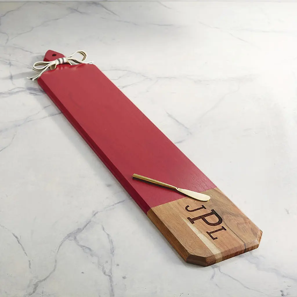 Crafted of premium-quality acacia wood, our St. James Charcuterie Board is where beauty meets functionality. Customize with optional initials or a family name to add a personal touch.Accented with a red finishIncludes ribbon and gold cheese spreaderHandle for easy transportMade with 100% acacia woodCustomizableAt Frontgate, our primary focus is quality. We guarantee that every product we sell will stand up to the supreme test – our customers' satisfaction. To learn more about our policies, visit our Shipping & Processing, Returns & Exchanges and Warranty & Price Guarantee pages.Crafted of premium-quality acacia wood, our St. James Charcuterie Board is where beauty meets functionality. Customize with optional initials or a family name to add a personal touch.Accented with a red finishIncludes ribbon and gold cheese spreaderHandle for easy transportMade with 100% acacia woodCustomizableAt Frontgate, our primary focus is quality. We guarantee that every product we sell will stand up to the supreme test – our customers' satisfaction. To learn more about our policies, visit our Shipping & Processing, Returns & Exchanges and Warranty & Price Guarantee pages.