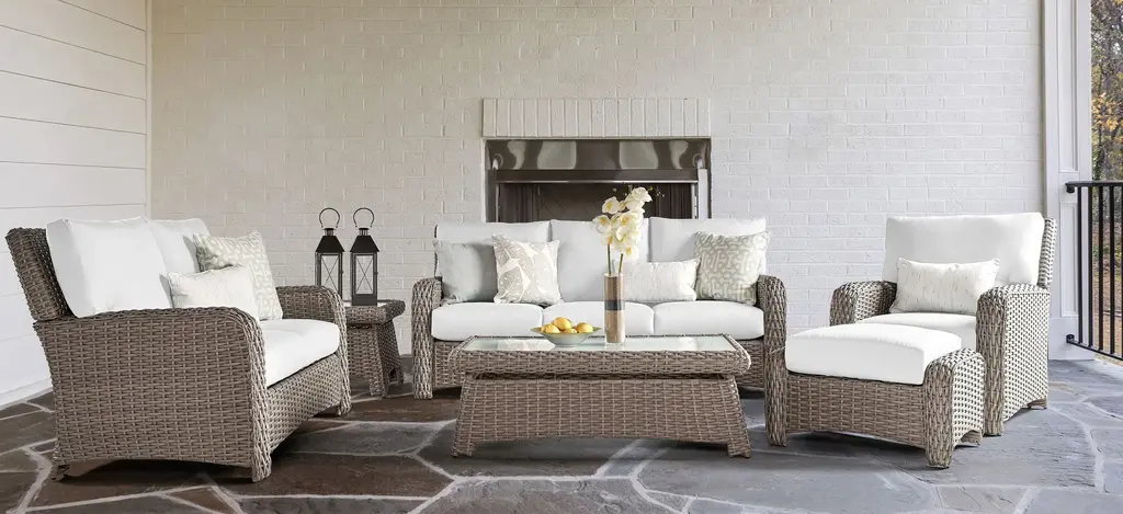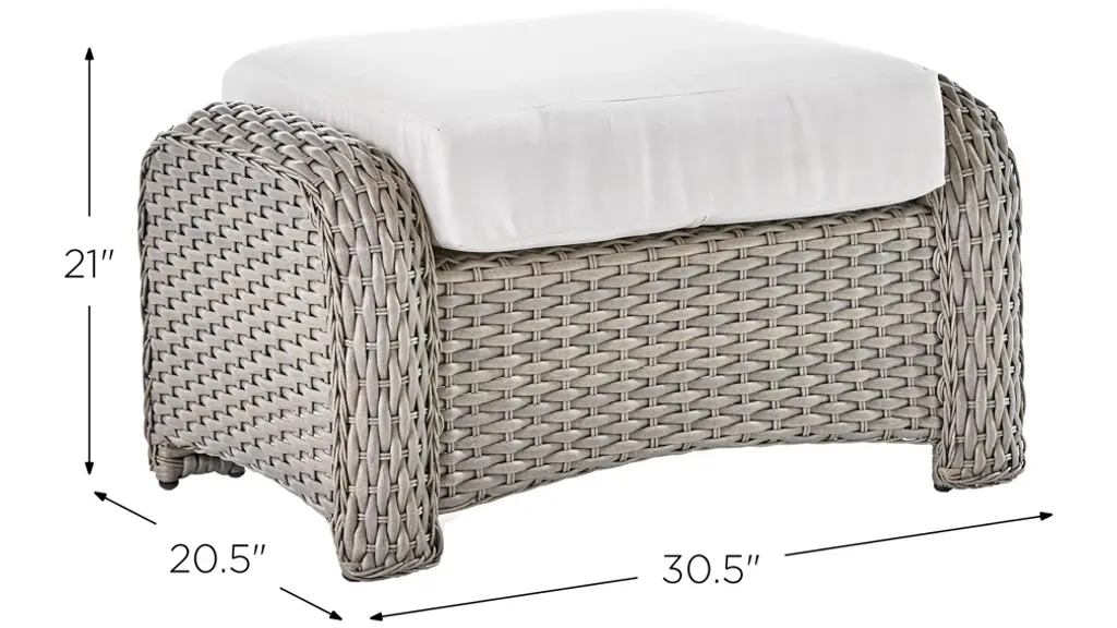 Timeless appeal meets a clean, modern aesthetic in the St Tropez Stn Outdoor Ottoman. The perfectly proportioned Saint Tropez Collection features rustproof aluminum framing. Mold and mildew resistant cushion cores are layered, high-density poly fiber and dry conjugate blend. Each seat has an independent suspension. Crafted with high-density polyethylene synthetic wicker,handwoven over fully-welded powder-coated aluminum framing.