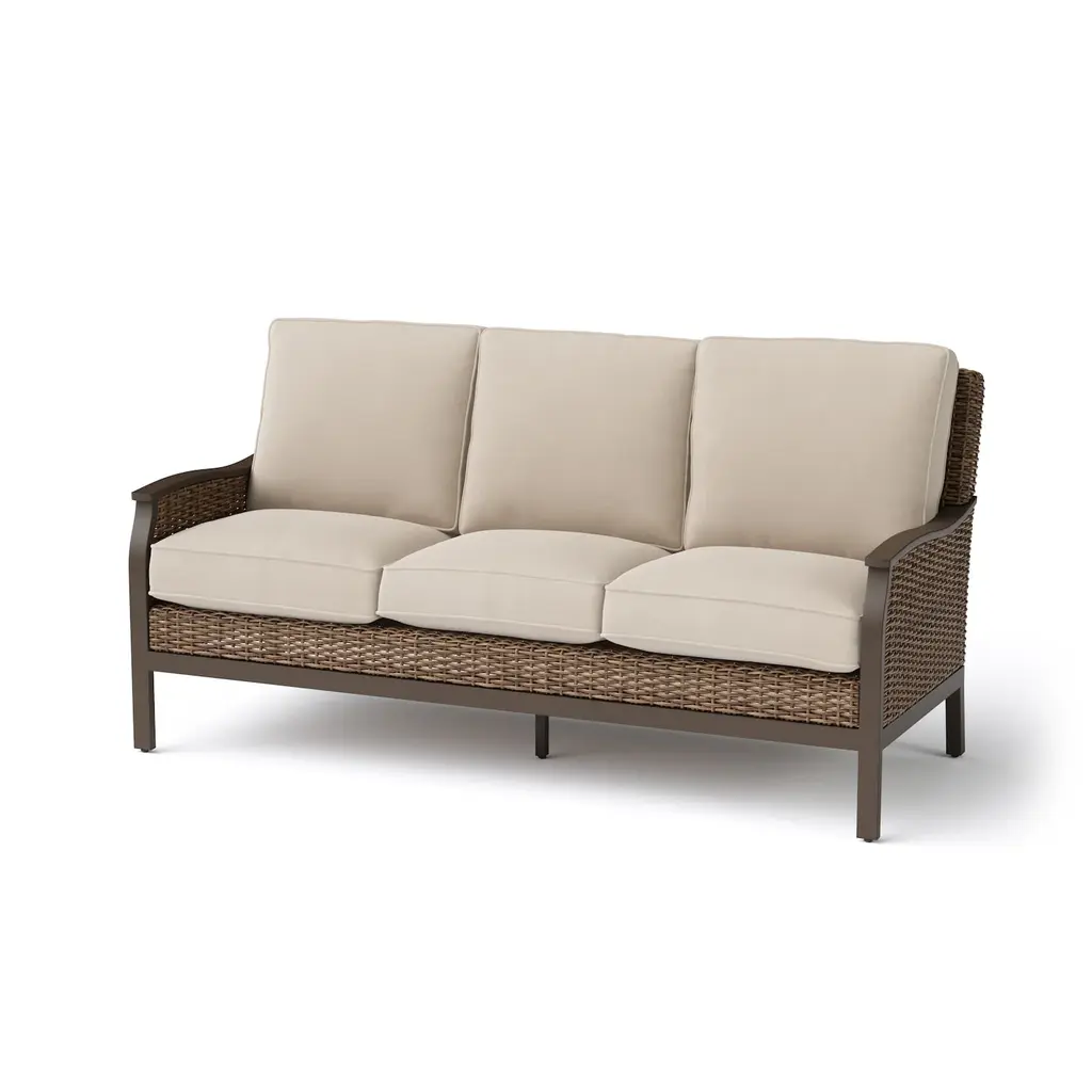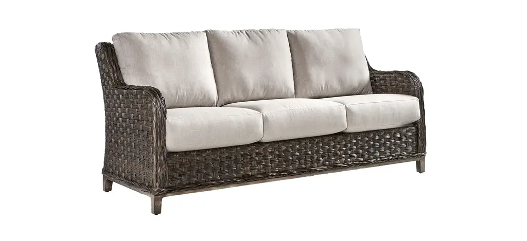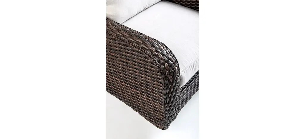 Timeless appeal meets a clean, modern aesthetic in the St Tropez Tob Outdoor Sofa. The perfectly proportioned Saint Tropez Collection features rustproof aluminum framing. Mold and mildew resistant cushion cores are layered, high-density poly fiber and dry conjugate blend. Each seat has an independent suspension. Crafted with high-density polyethylene synthetic wicker,handwoven over fully-welded powder-coated aluminum framing.