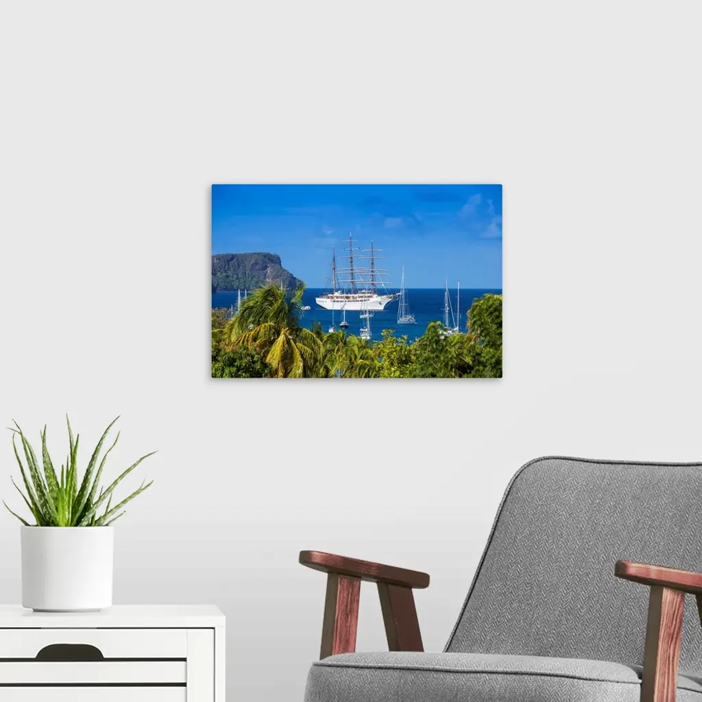 St Vincent And The Grenadines, Bequia, View Of Sea Cloud 11 Cruise Ship In Admiralty Bay