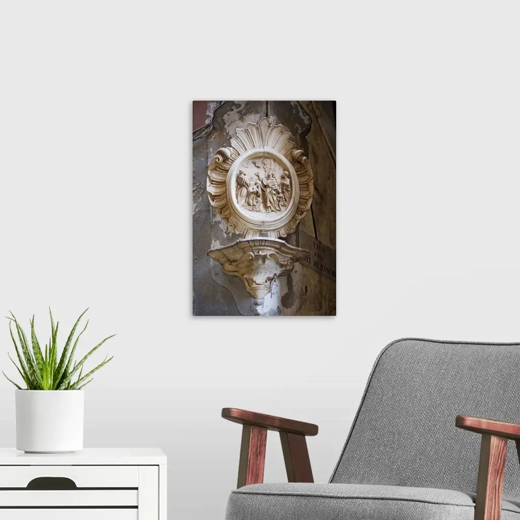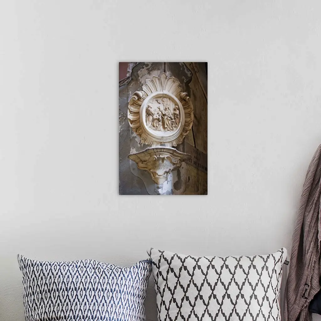 St. Vincent Ferrerio stone carving in the old town, Genoa, Liguria, Italy wall art for home and office decor. Discover canvas art prints, photos, mural, big canvas art and framed wall art in GreatBigCanvas.com's varied collections.