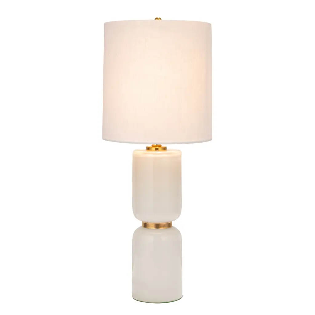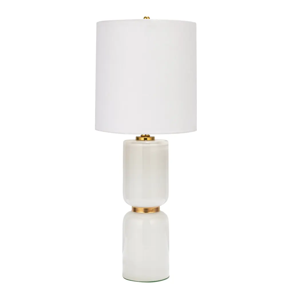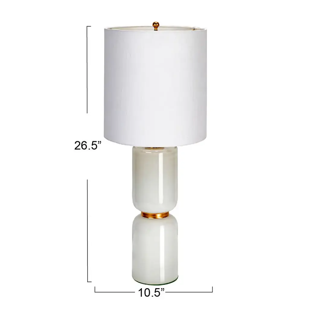 Stacked Glass Base Table Lamp With Cotton Drum Shade - 10.5"l X 10.5"w X 26.5"h - 10.5"l X 10.5"w X 26.5"h - White