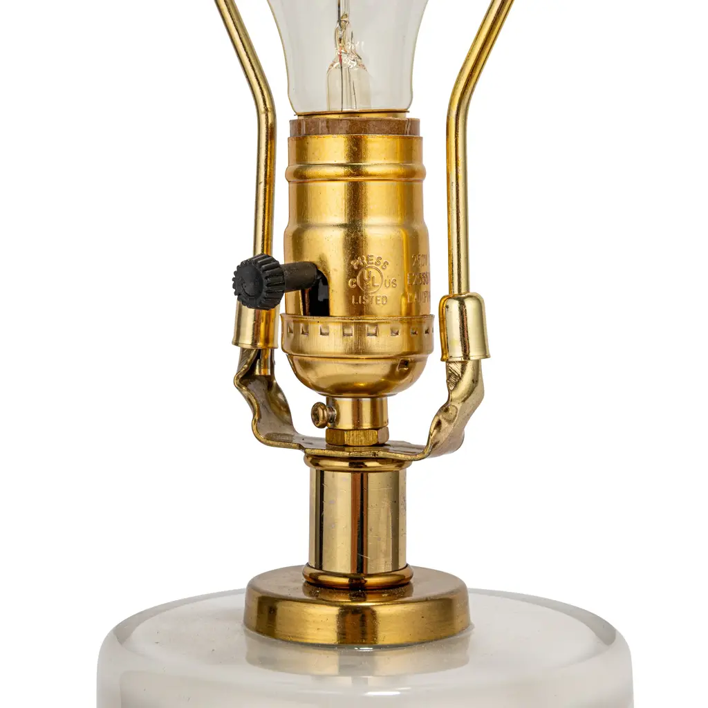 The gentle contours of the cotton shade perfectly complement the sculptural base of this table lamp, forming a harmonious ensemble that radiates timeless elegance. Meticulously crafted from premium glass, metal, and cotton materials, this table lamp stands as a testament to exceptional quality and artistry. Its compact yet impactful presence allows it to grace any tabletop or nightstand with ease. Please note that the light bulb is not included, allowing the freedom to select the perfect lighting that suits any preference. Whether a warm, ambient lighting or bright, focused illumination, this lamp will bathe any space in an enchanting glow.Features: