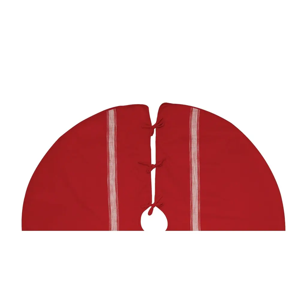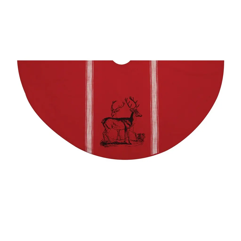 Add a rustic warmth to your home with the Stag Feed Sack tree skirt. Whether you're looking to put the finishing touches on your lodge decor, or decorating your home for the holidays, this feed sack tree skirt features printed stag motif atop a woven red ground. Love the look? This collection is also available in coordinating tabletop, stocking and accent pillow.Hand crafted woven tree skirt with majestic deer printCrafted of cottonA tie closure allows you to secure the tree skirt in place underneath the Christmas tree
