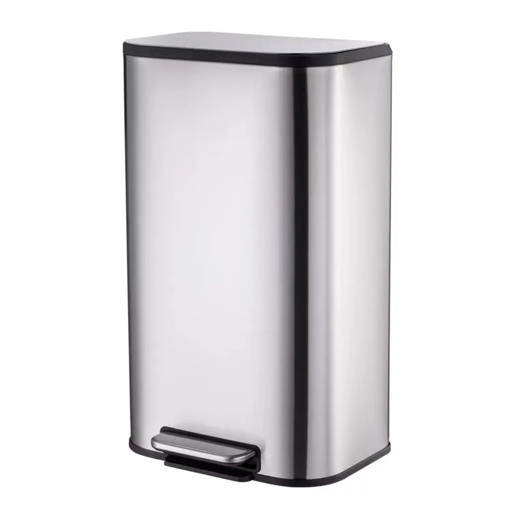 Stainless Steel Garbage Can With Lid, Step-on Pedal And Inner Bucket