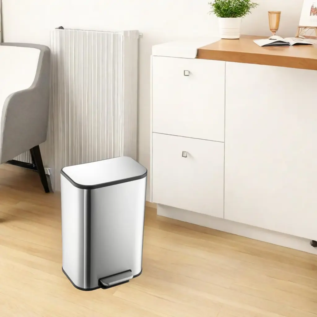 Bathroom Trash Can, Stainless Steel Garbage Can with Lid, Step-On Pedal and Inner Bucket, Rectangular Trash Can for Kitchen for Office Living Room Small Spaces