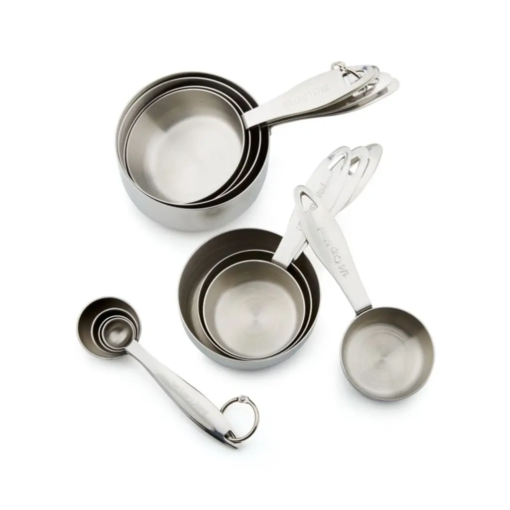 Take the guesswork out of odd-size ingredient portions with this stainless steel set that measures in 2/3-, 3/4-, 1 1/2- and 2-cup measurements. The substantial stainless steel measuring cups have a wide profile for easy measuring and flat bases that sit steady on the counter.Check out our guide to the top kitchen gadgets to help out with meal prep.