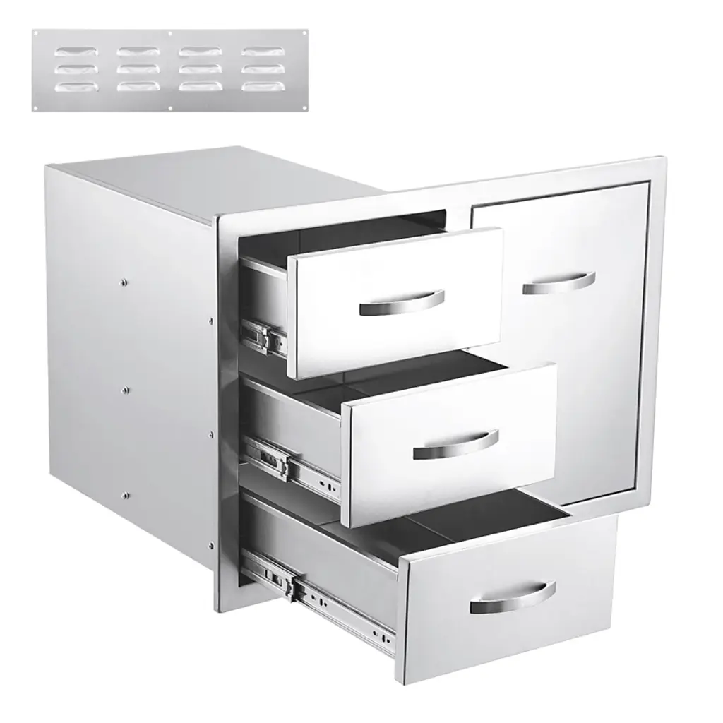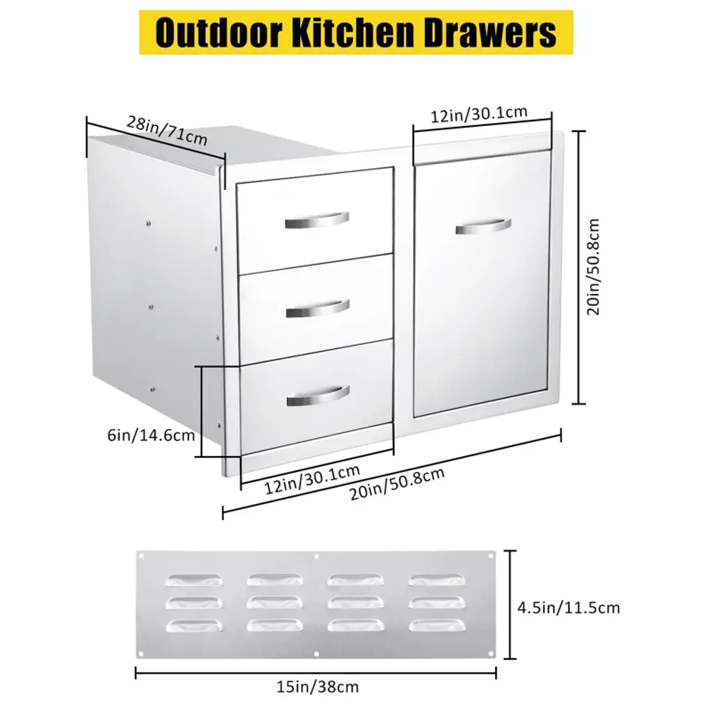 Stainless Steel Outdoor Kitchen Cabinet Door Set - Left Drawer + Right Door (28x20x20 Inch), Nsf Double Wall, Includes Vent Panel For Grill/bbq