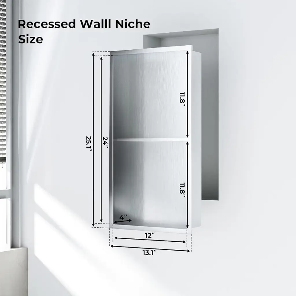 Stainless Steel Shower Niche 12x24 With Recessed Rectangle Design, No-tile Installation Needed, Wall Storage For Bathroom