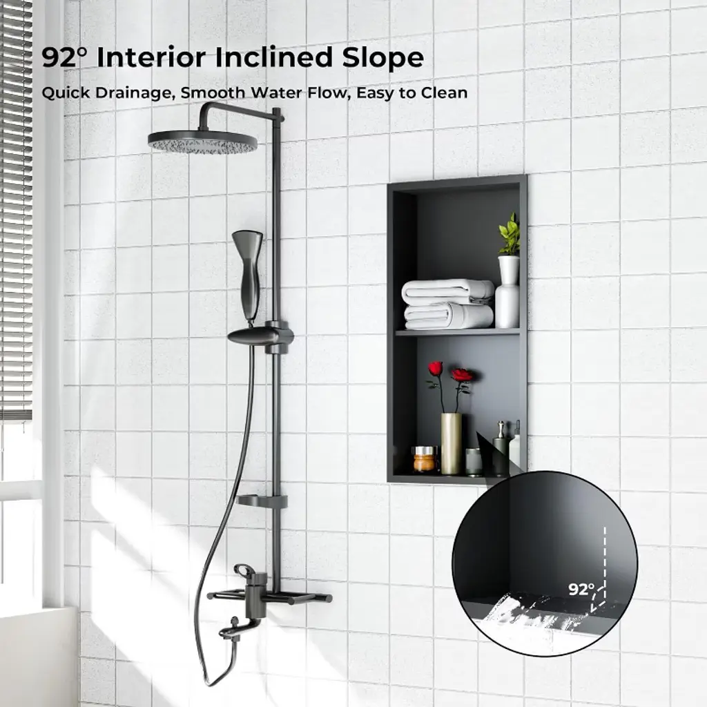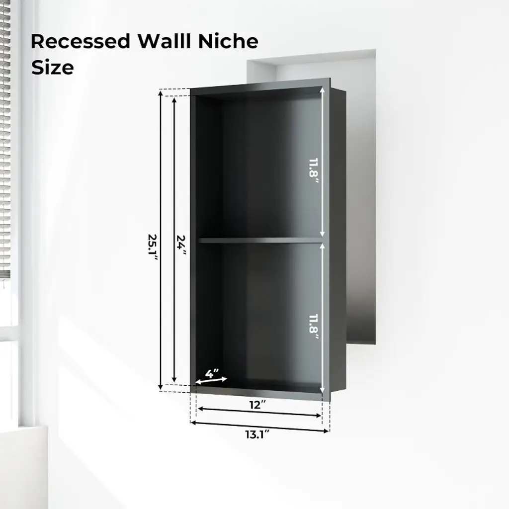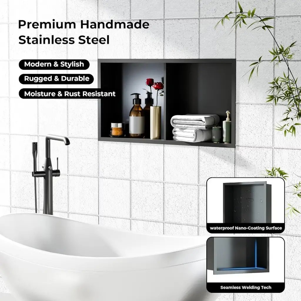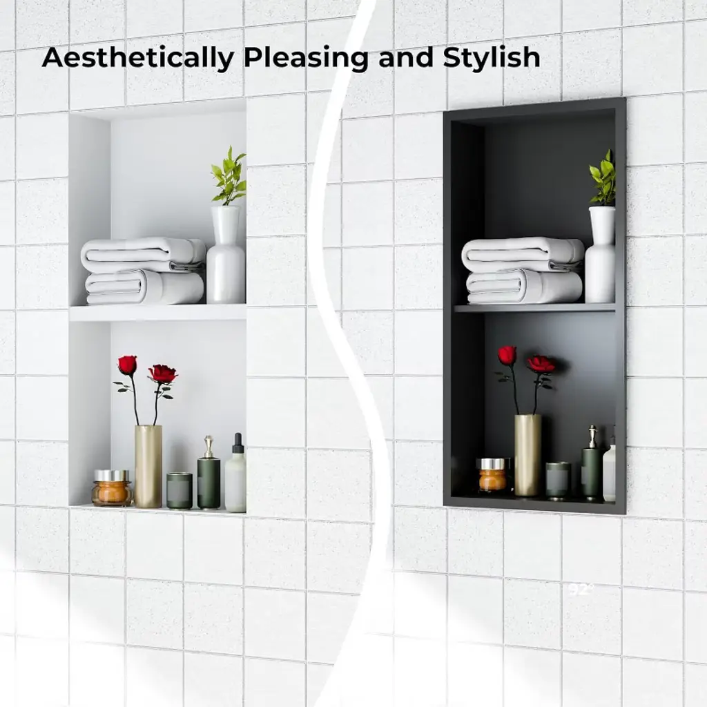 Upgrade your shower or living space with this premium stainless steel shower niche designed for durability and style. Crafted from high-quality stainless steel, it resists rust and maintains a sleek, modern look that complements any bathroom, kitchen, or living room wall. Its recessed design eliminates the need for complicated tile work, allowing for easy installation that saves both time and money. This niche provides ample storage space to neatly organize your shampoo, soap, and other essentials, helping you keep your shower or bathroom clutter-free and functional. Versatile enough to be installed in showers, kitchens, or living rooms, it adapts seamlessly to tiled or drywall surfaces, adding a practical yet stylish storage solution wherever you need it. The smooth stainless steel finish is not only visually appealing but also easy to clean, resisting stains and water spots to keep your space looking fresh with minimal effort. Whether you're renovating or just looking to improve your organization, this shower niche offers a combination of convenience, durability, and modern design that makes everyday routines simpler and your space more inviting. Its thoughtful construction and user-friendly installation process mean you can enjoy professional-quality results without hassle, bringing order and elegance to your home.