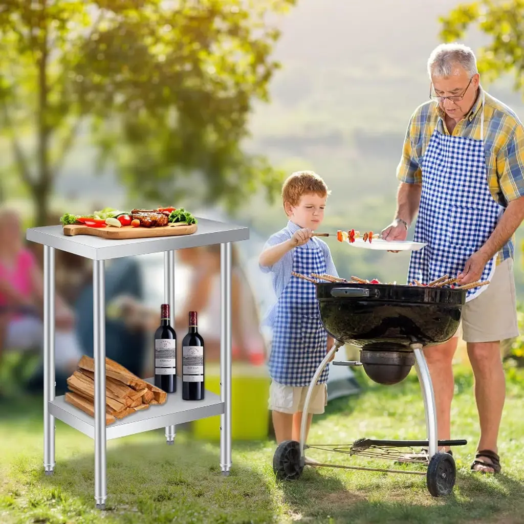 Easy to Maintain: Made from high-quality stainless steel, this kitchen prep table resists rust, stains, and corrosion. Its smooth, non-porous surface wipes clean in seconds, making it ideal for busy chefs, bartenders, or outdoor cooking. Whether in a commercial kitchen or home setup, hygiene is effortless.