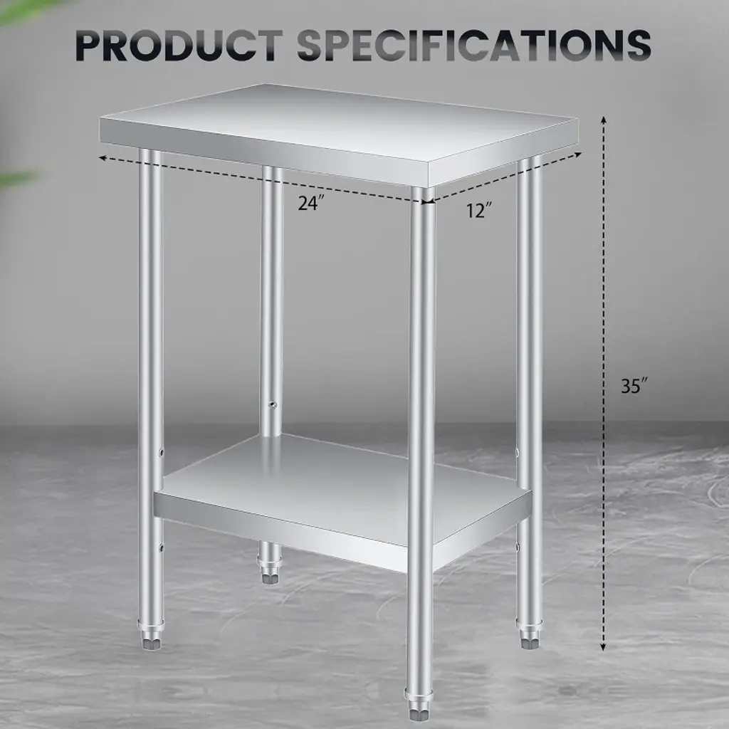 Stainless Steel Table, Heavy Duty Worktable With Adjustable Undershelf, 2 Tier Metal Prep Table, 12′′x 24′′+ Legs