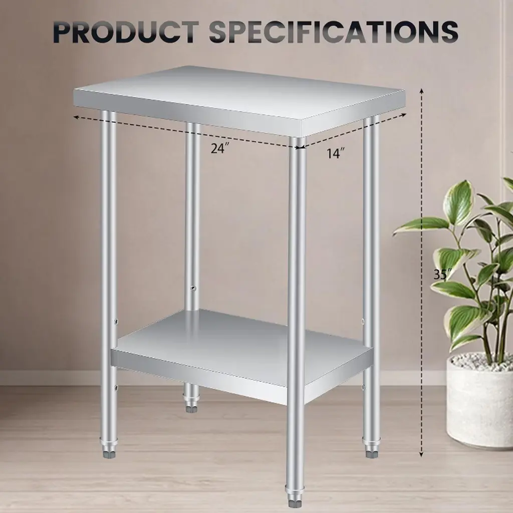 Stainless Steel Table, Heavy Duty Worktable With Adjustable Undershelf, 2 Tier Metal Prep Table, 14′′x 24′′+ Legs