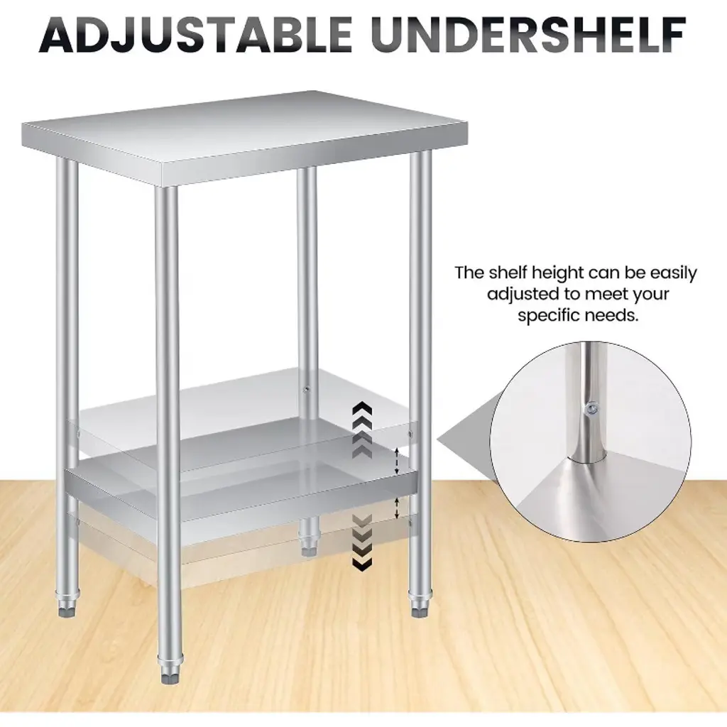Stainless Steel Table, Heavy Duty Worktable With Adjustable Undershelf, 2 Tier Metal Prep Table, 18′′x 24′′+ Legs